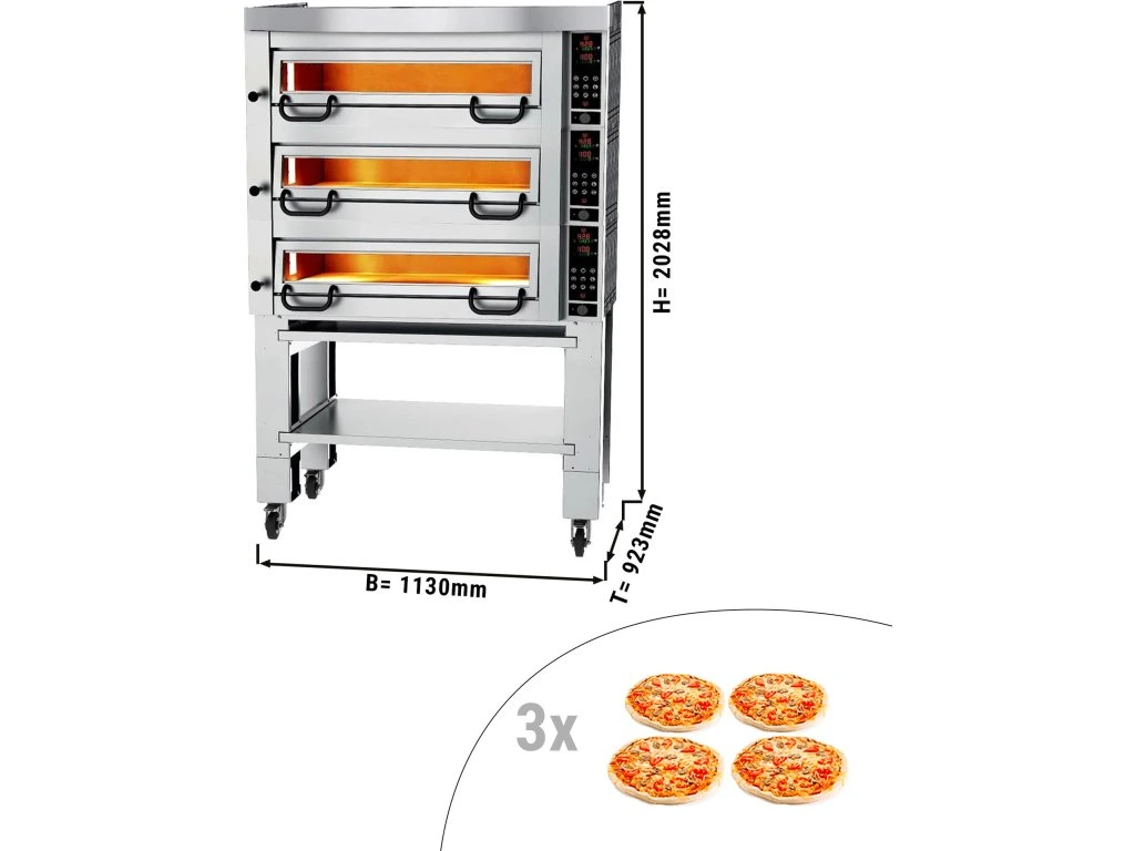 Elektryczny piec do pizzy Power - 4+4+4x 34cm - Cyfrowy - włącznie z okapem & podstawą