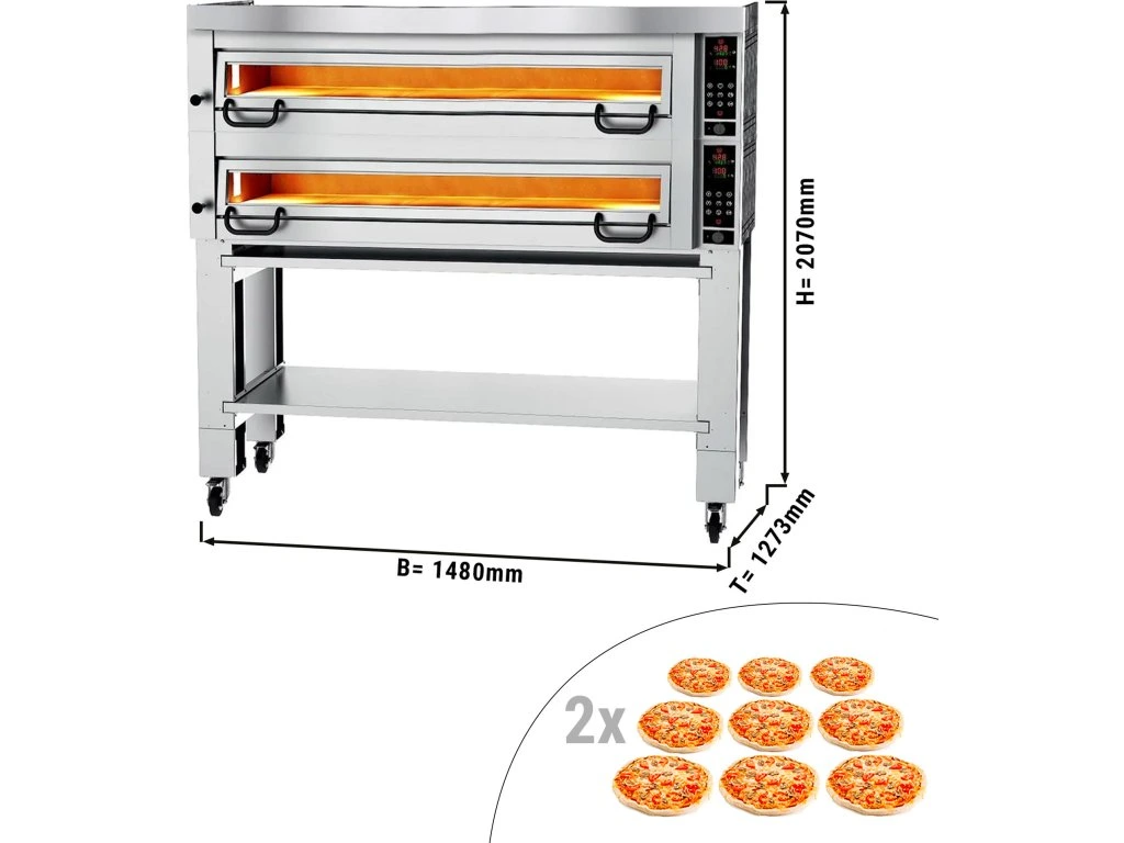 Elektryczny piec do pizzy Power - 9+9 34cm - Cyfrowy - włącznie z okapem, podstawą i zestawem kółek