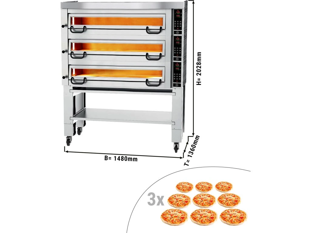Elektryczny piec do pizzy Power - 9+9+9x 34cm - Cyfrowy - włącznie z okapem & podstawą