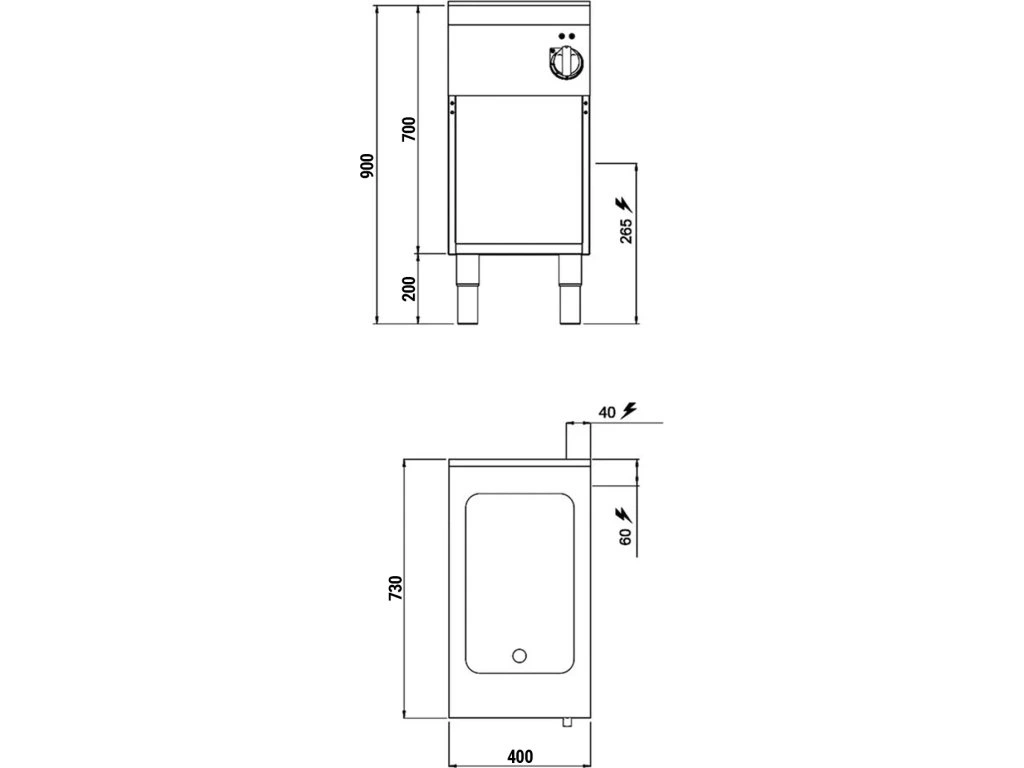 - Wymiary zewnętrzne szer. x gł. x wys: 400 mm x 730 mm x 900 mm