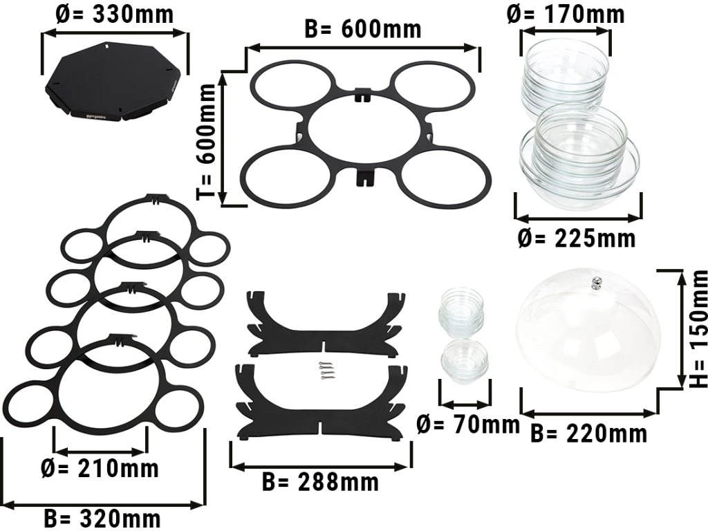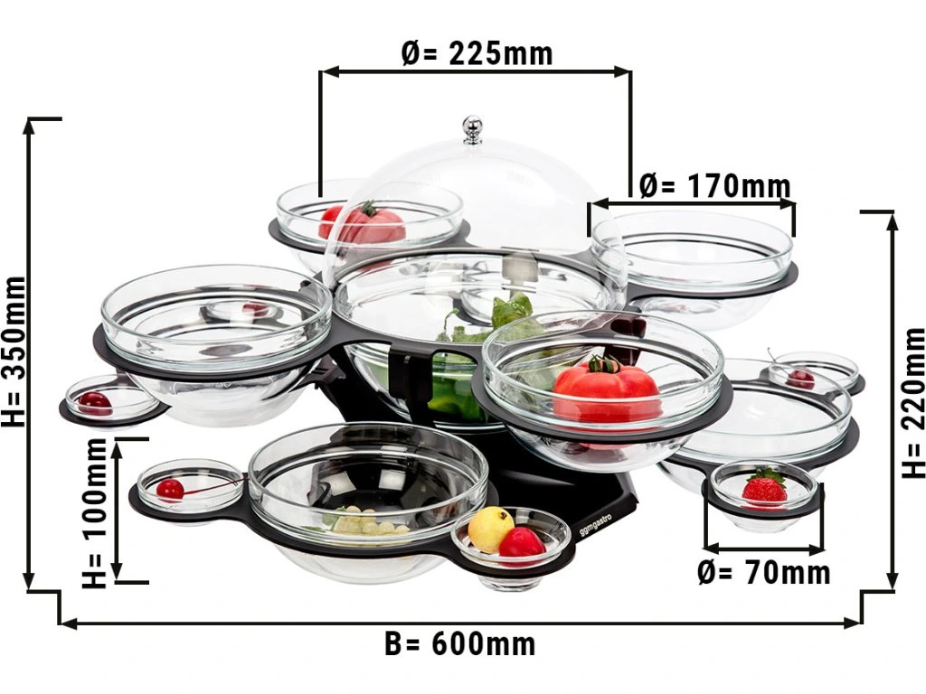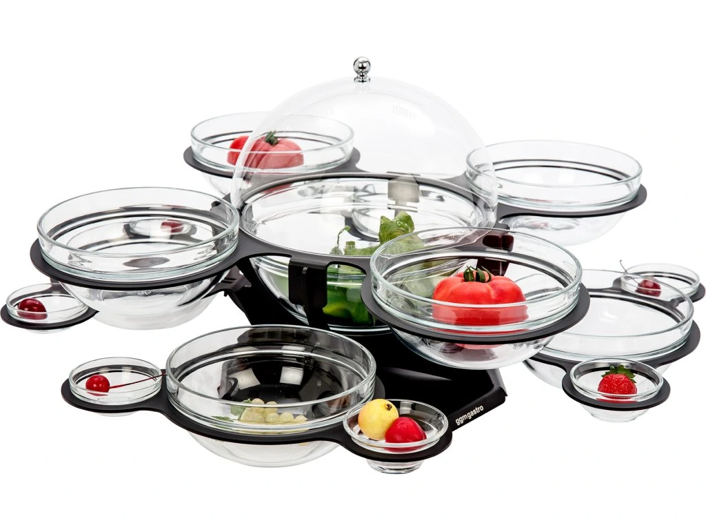 Etażerka/stojak bufetowy - obrotowy - czarny - włącznie z 17 szklanymi miskami - okrągły
