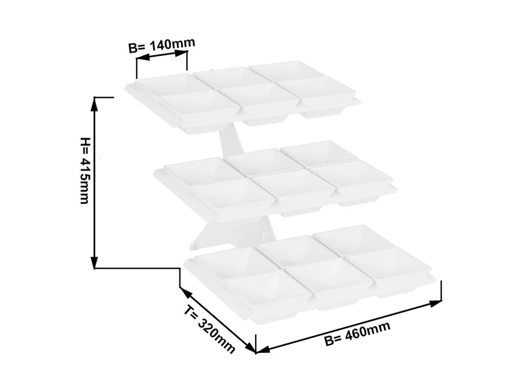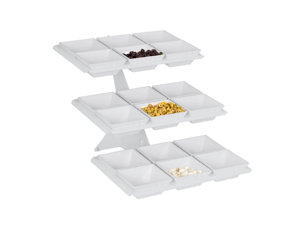 Etażerka/ Stojak bufetowy - biały - włącznie z 18 miseczkami z melaminy - kwadratowy