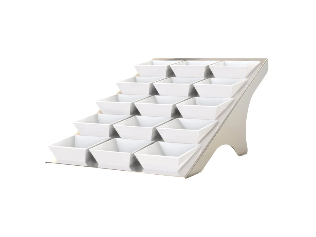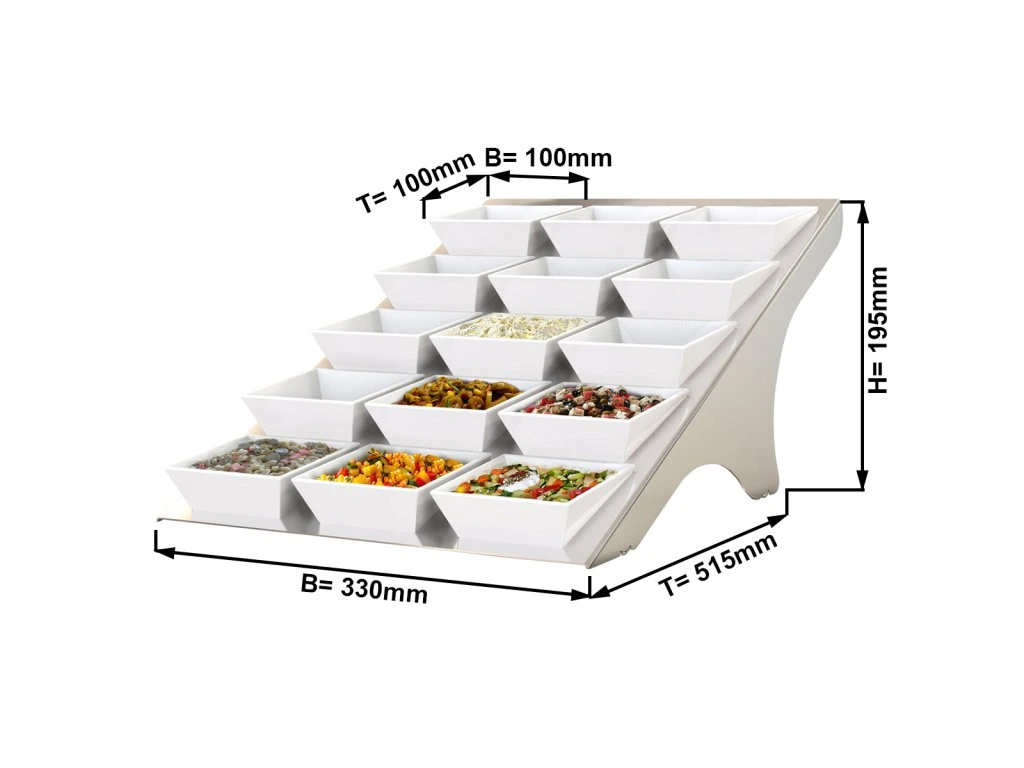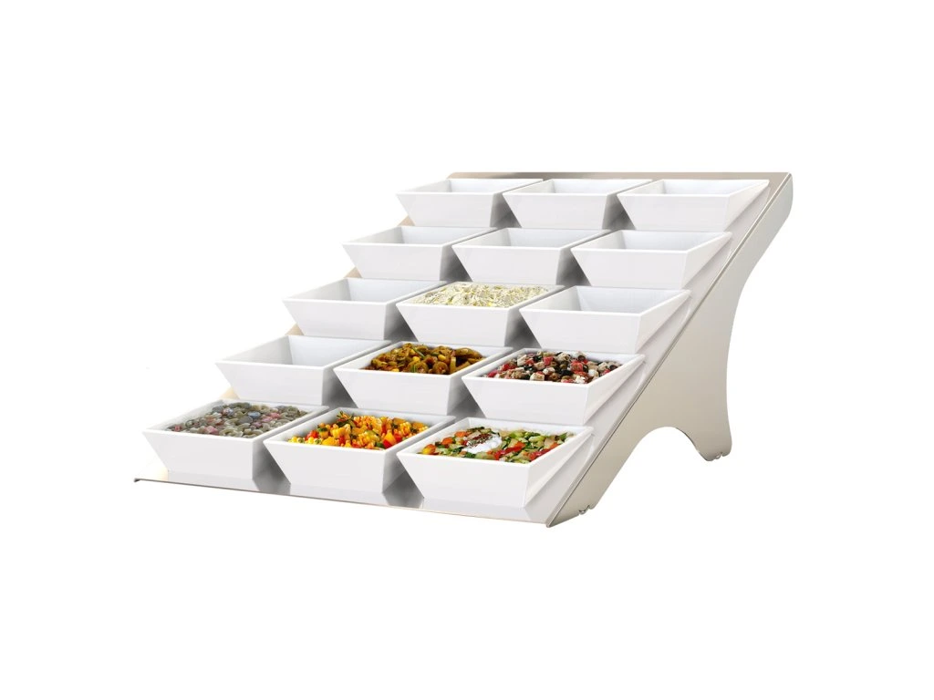 Etagerie / Stojak bufetowy - chrom - włącznie z 15 miseczkami z melaminy - kwadratowy