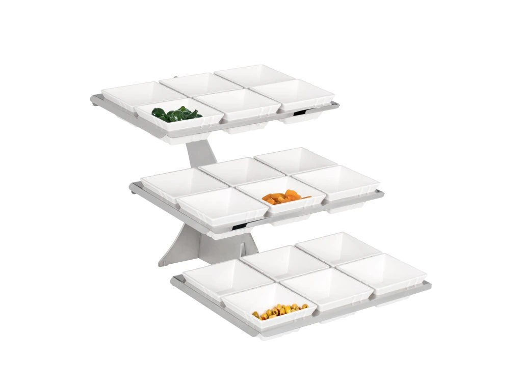 Etażerka / Stojak bufetowy - chrom - włącznie z 18 miseczkami z melaminy - kwadratowy