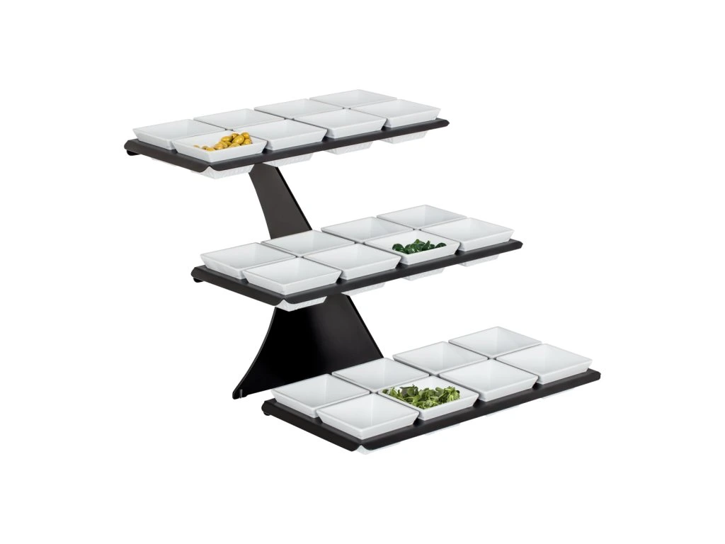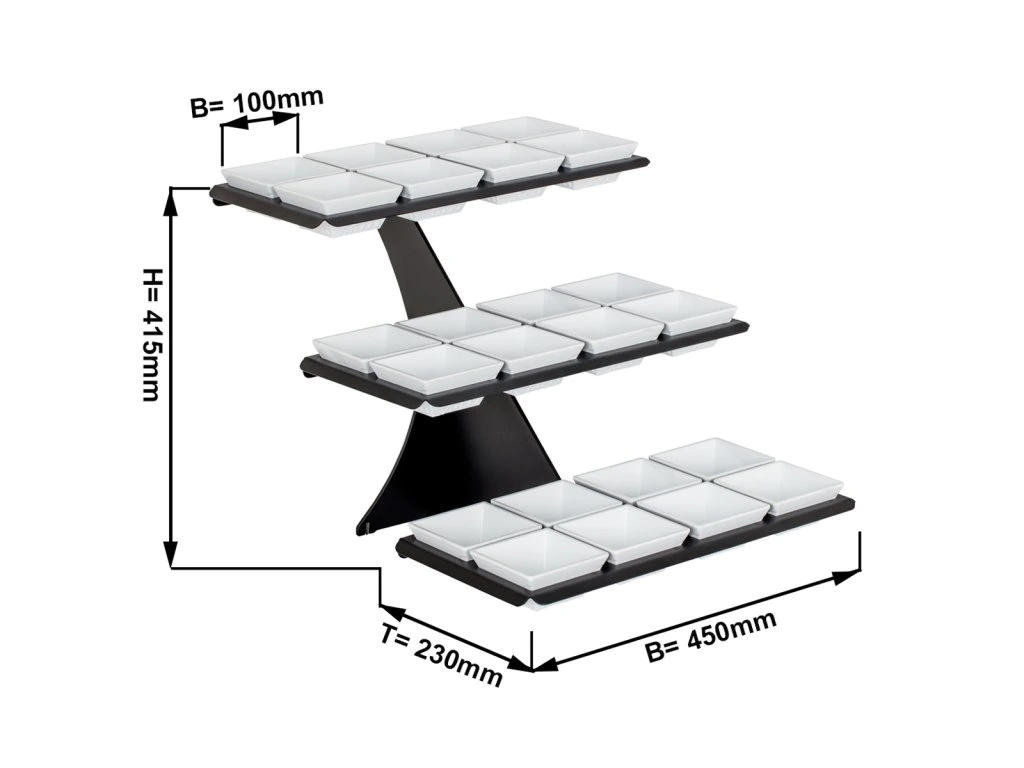 Etażerka/ Stojak bufetowy - czarny - włącznie z 24 miseczkami z melaminy - kwadratowy