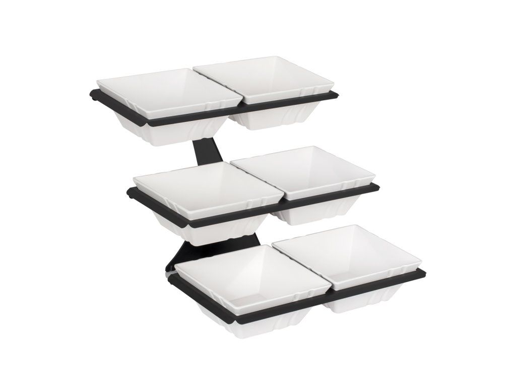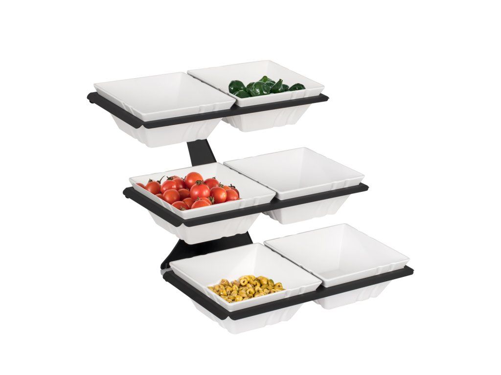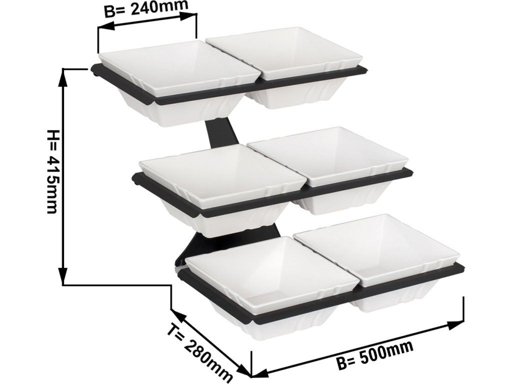 Etażerka / Stojak bufetowy - czarny - włącznie z 6 miseczkami z melaminy - kwadratowy