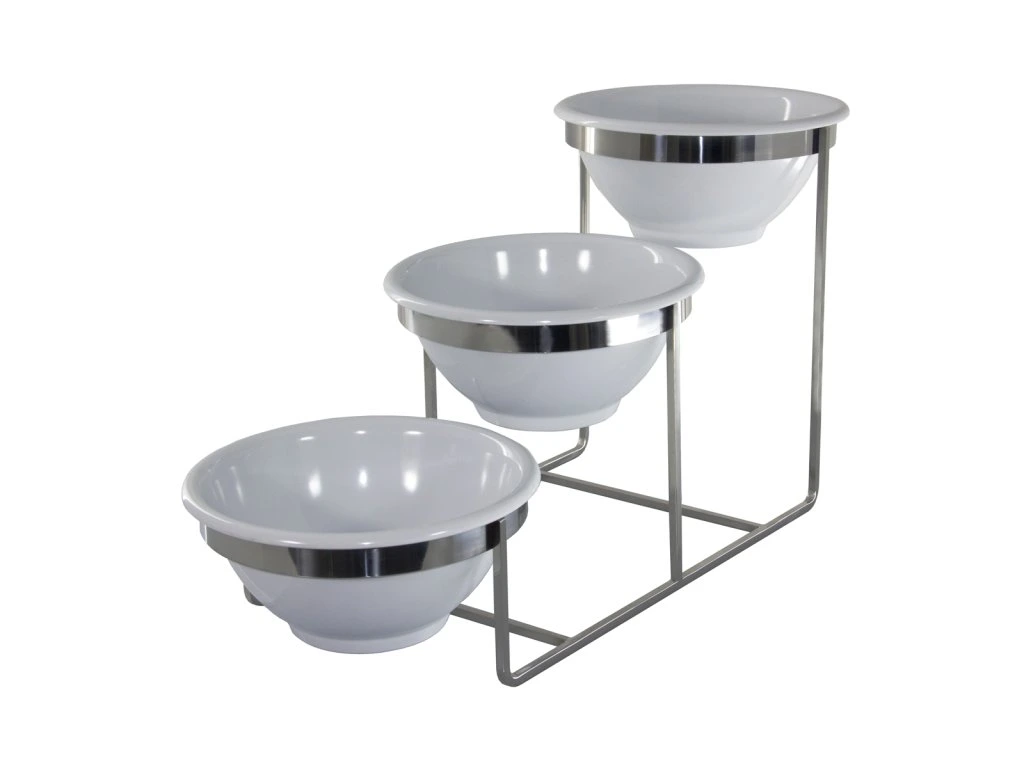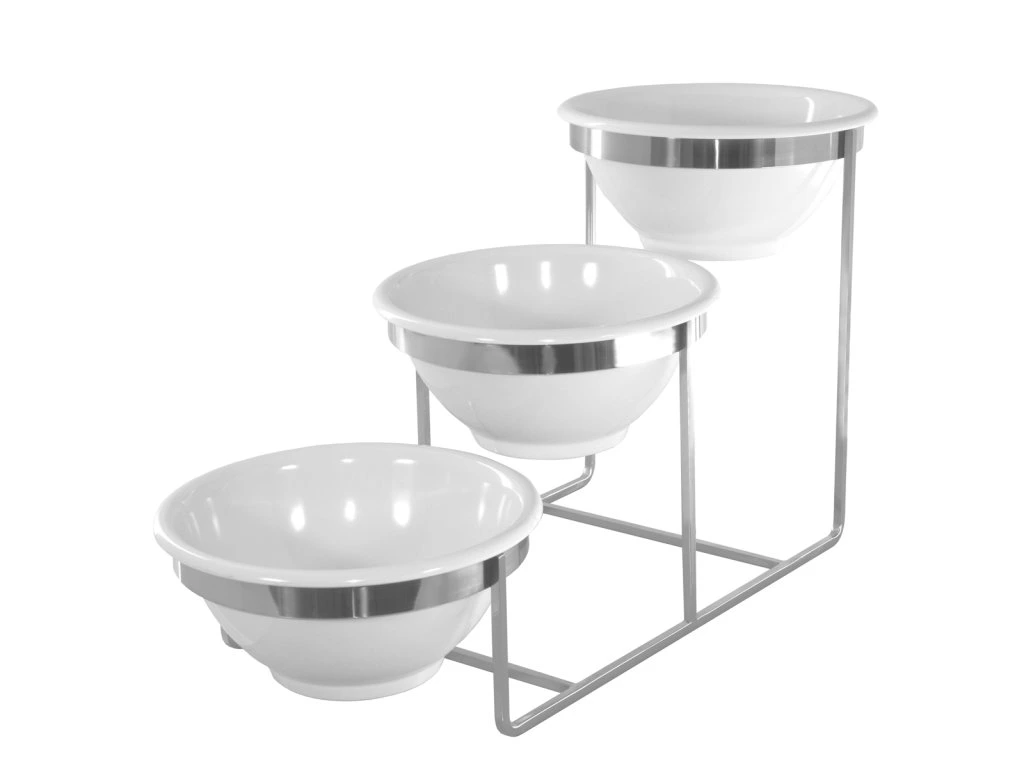 Etażer / Stojak bufetowy - chrom - włącznie z 3 miseczkami z melaminy - okrągły