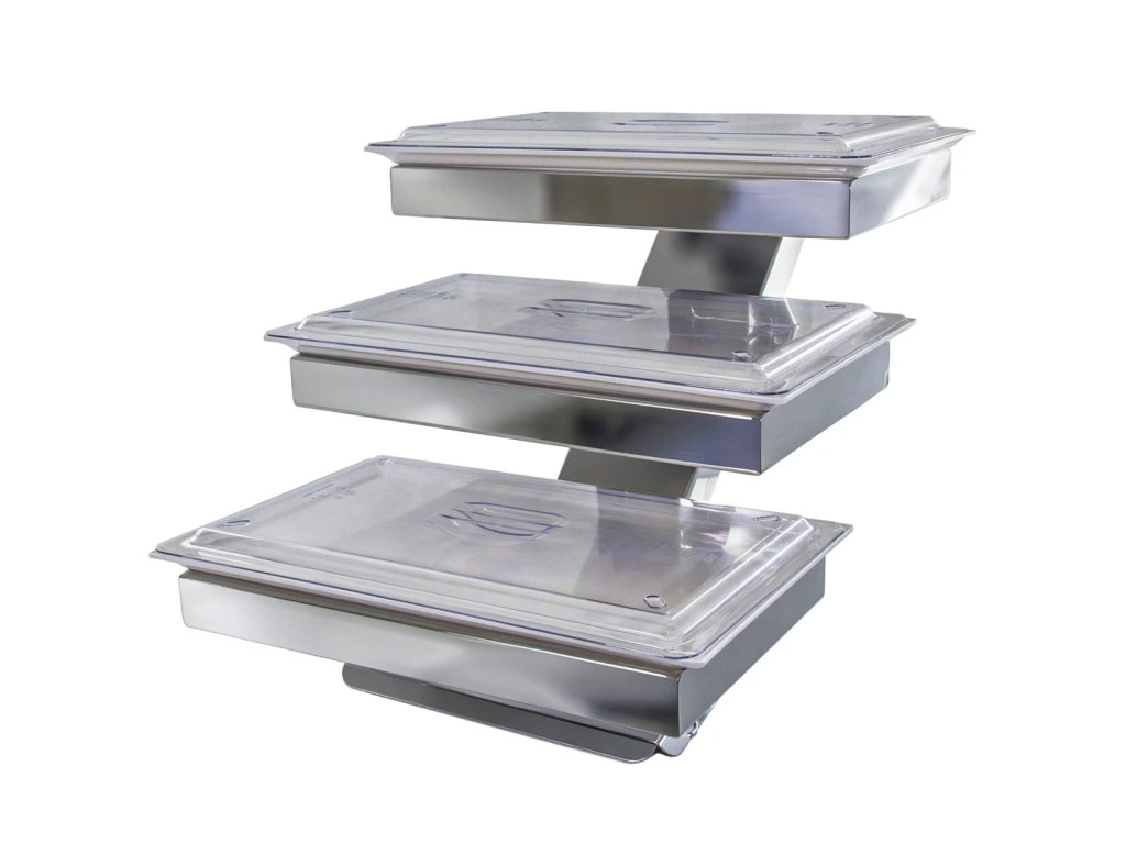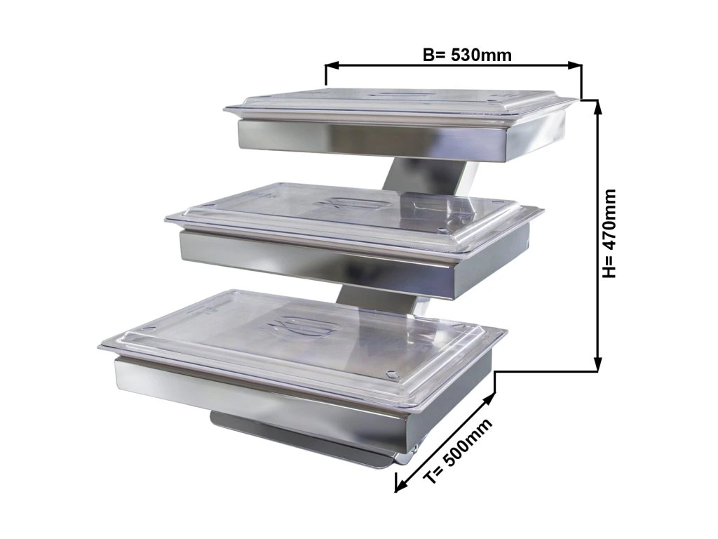 Etażerka / Stojak bufetowy - chrom - włącznie z 3 miskami z melaminy