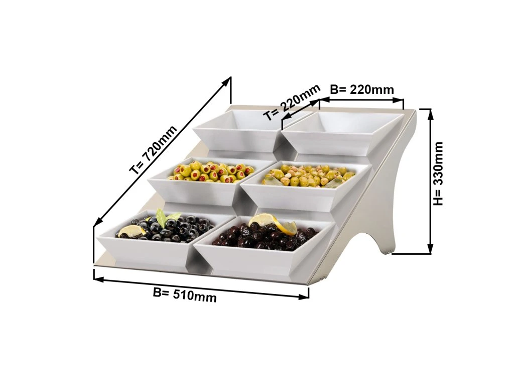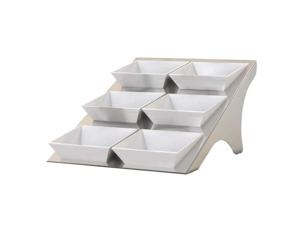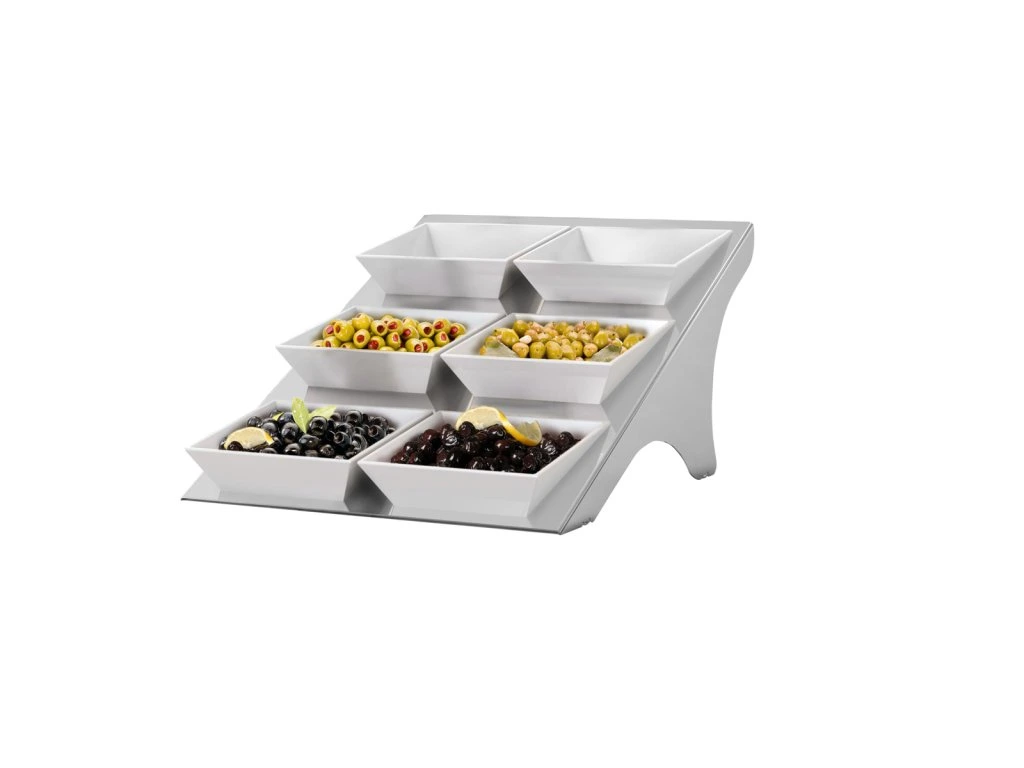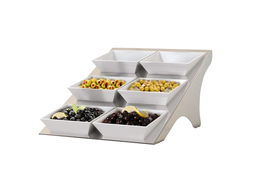 Etażer / Stojak bufetowy - chrom - włącznie z 6 miskami z melaminy - kwadratowy