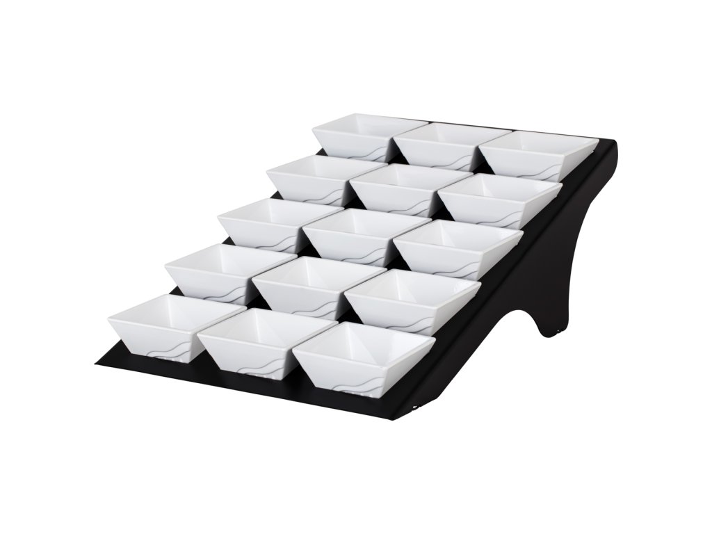Etażer / Stojak bufetowy - czarny - włącznie z 15 miseczkami z melaminy - kwadratowy