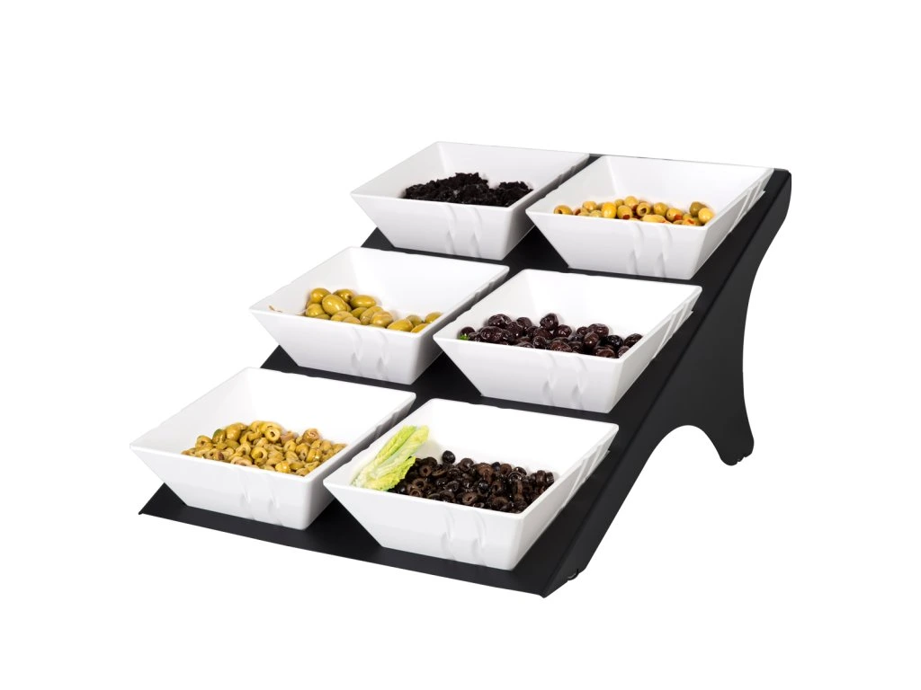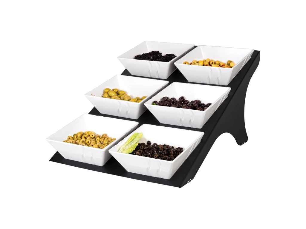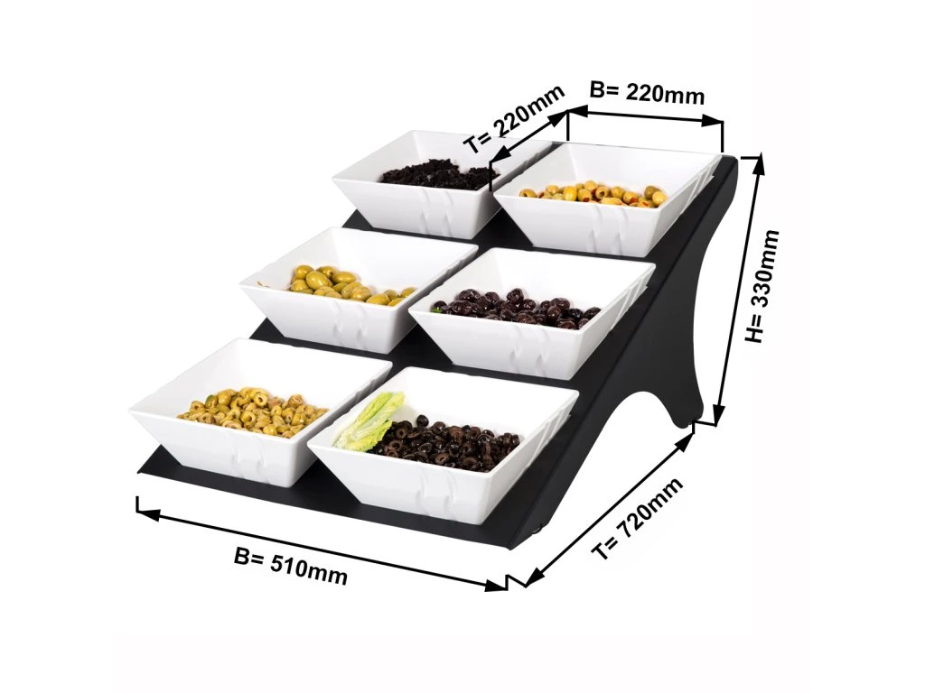 Etażer / Stojak bufetowy - czarny - włącznie z 6 miseczkami z melaminy - kwadratowy