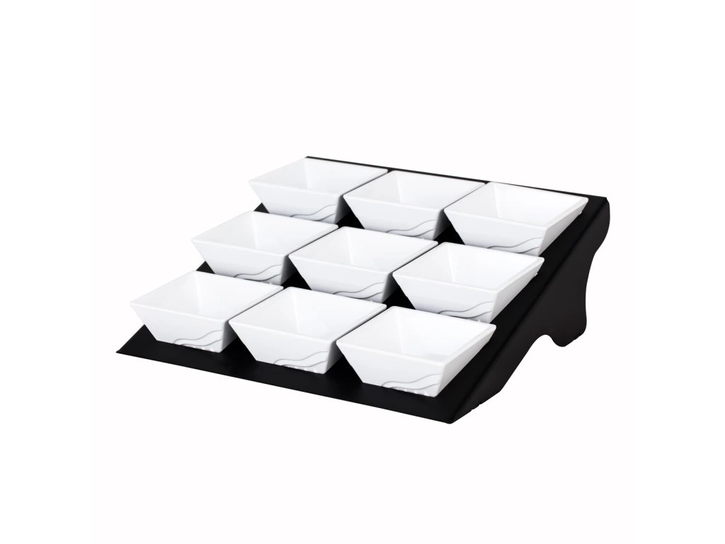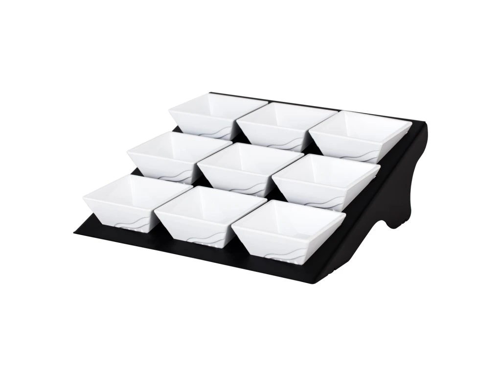 Etażer / Stojak bufetowy - czarny - włącznie z 9 miseczkami z melaminy - kwadratowy