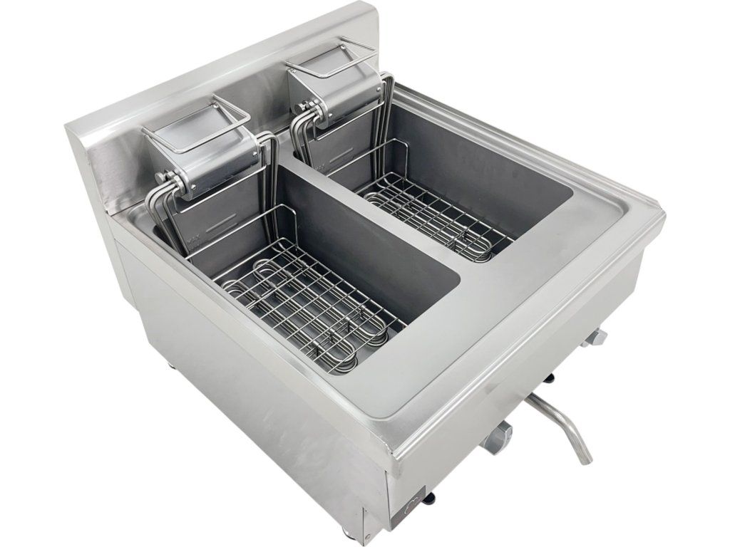 Profesjonalna frytkownica elektryczna z dwiema komorami o pojemności 2 x 11,5 l to idealny wybór do lokali gastronomicznych o dużej pojemności i potrzebie szybkiego przygotowywania potraw. Dzięki łącznej mocy 20 kW zapewnia szybkie podgrzewanie oleju i stabilną temperaturę nawet podczas intensywnej pracy. Dwa oddzielne zbiorniki umożliwiają jednoczesne przygotowywanie różnych potraw bez mieszania się smaków.
