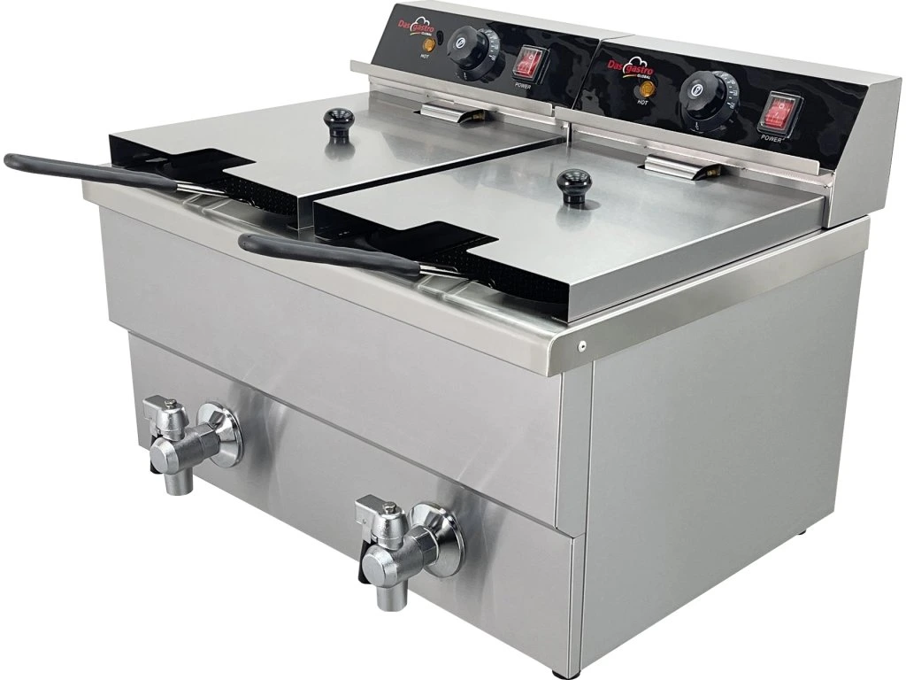 Profesjonalna frytkownica elektryczna DASEF-12l-2 z dwoma pojemnikami idealnie nadaje się do restauracji, bistro, fast foodów i innych lokali gastronomicznych. Pozwala na szybkie i wydajne przygotowanie smażonych potraw, zachowując jednocześnie maksymalną higienę i bezpieczeństwo.
