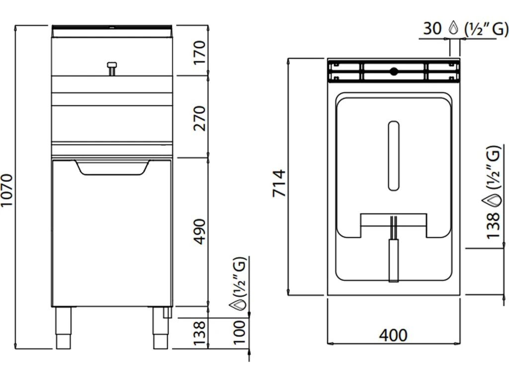 - Wymiary zewnętrzne szer. x gł. x wys: 400 mm x 714 mm x 1.070 mm