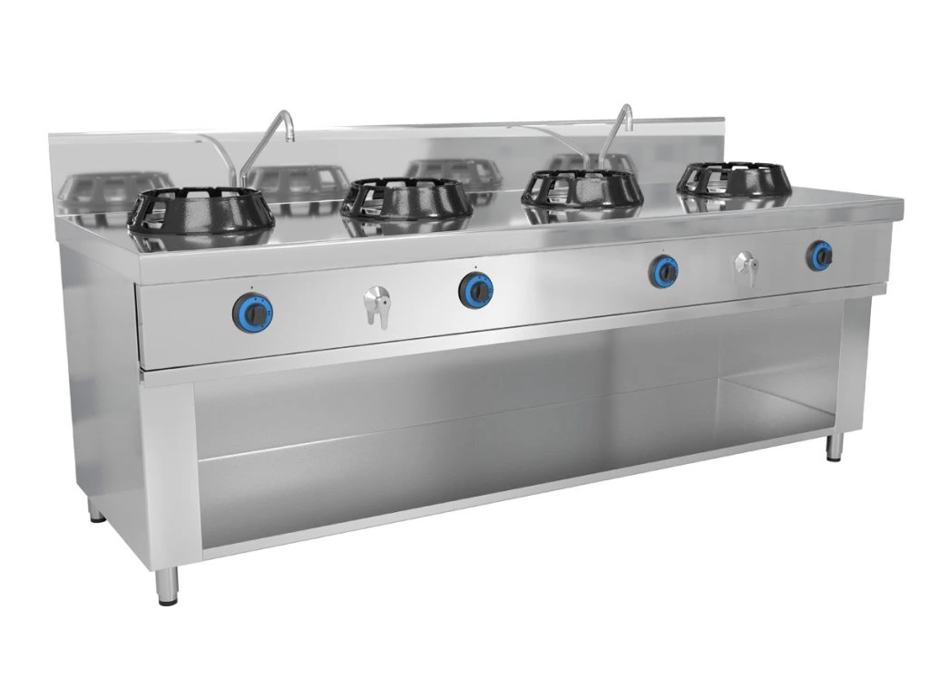 Gazowa kuchenka wok - 56 kW - 4 płyty grzewcze - włącznie z 2 mini kolumnami wodnymi