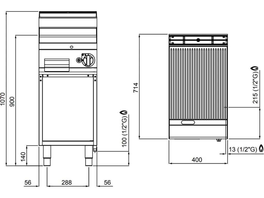 Gazowa płyta grillowa - 6,9 kW- Ryflowana