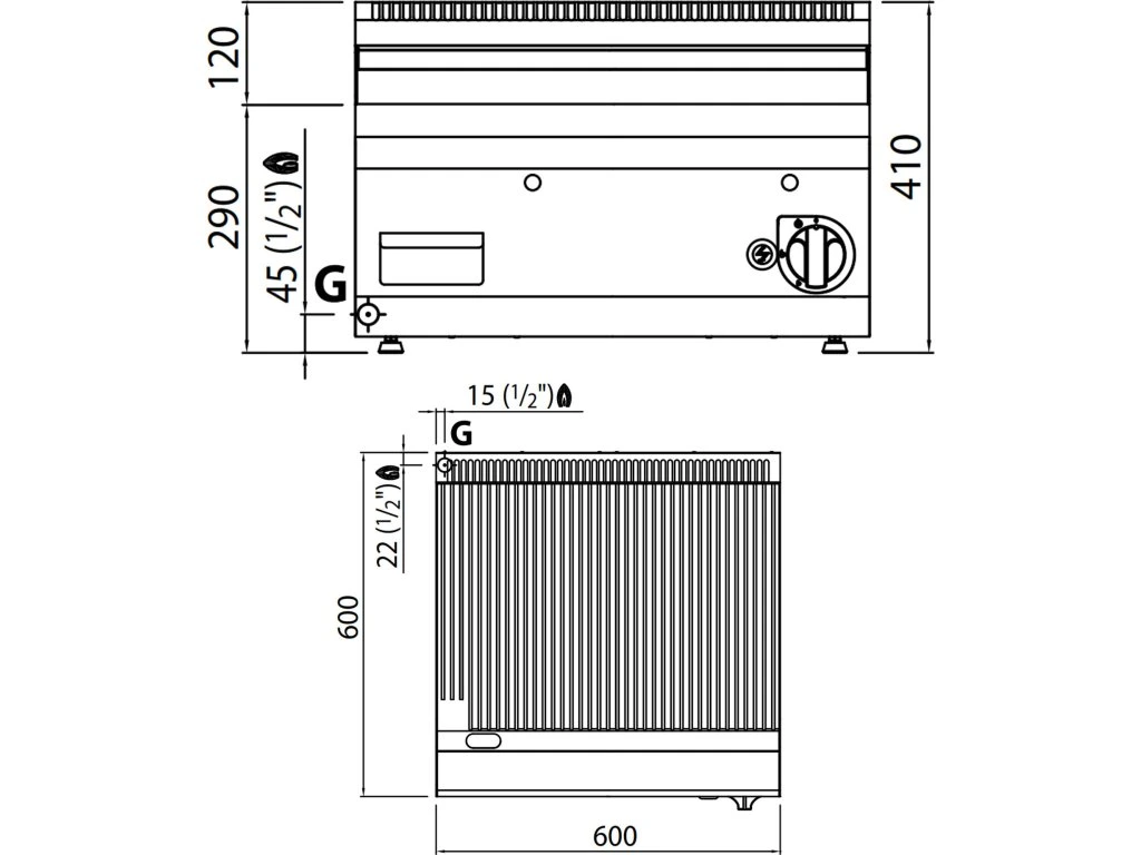 Gazowa płyta grillowa - 8 kW - Ryflowana