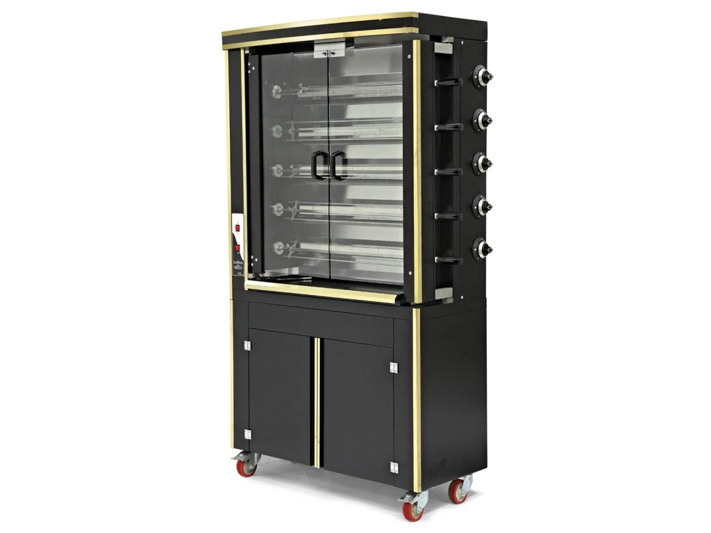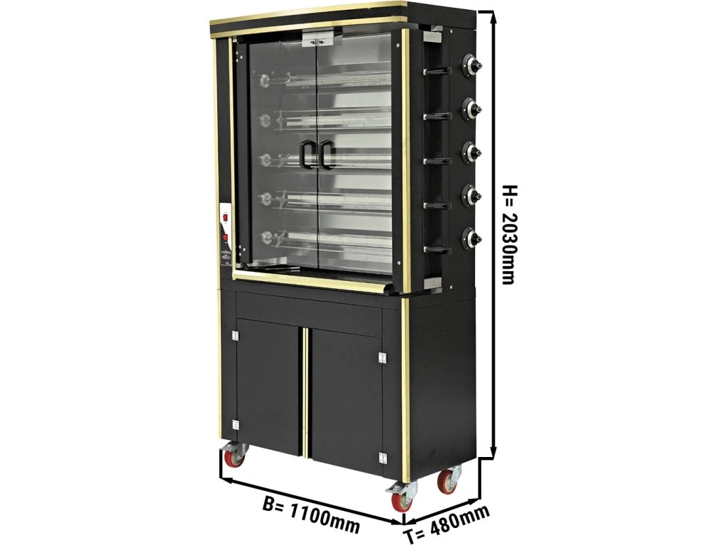 Grill gazowy do kurczaka - 30kW - z 5 szpikulcami do 30 kurczaków - czarny