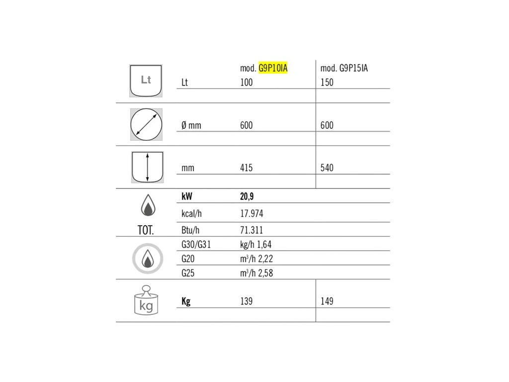 - Gaz ziemny w standardzie, urządzenie może być opcjonalnie przystosowane do zasilania propanem.