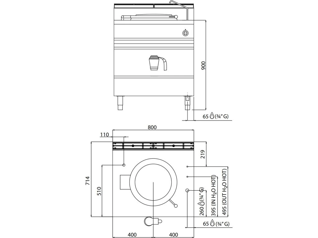 - Wymiary zewnętrzne szer. x gł. x wys: 800 mm x 714 mm x 900 mm