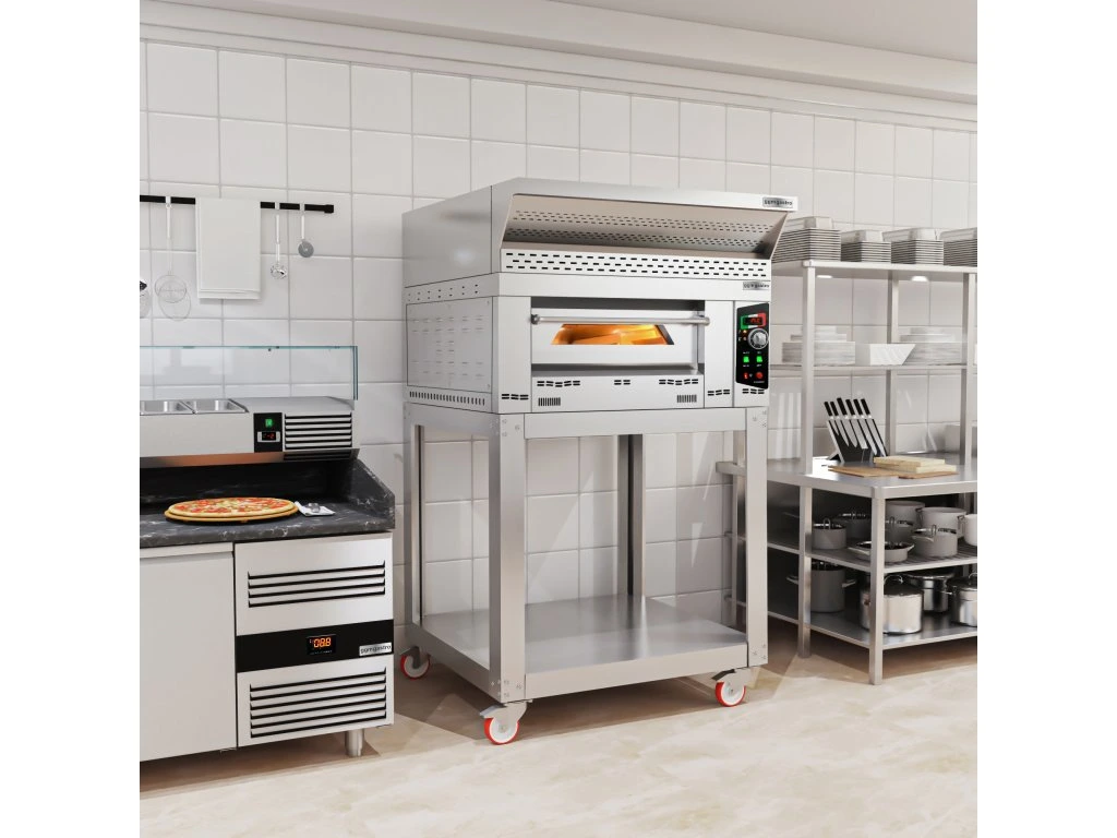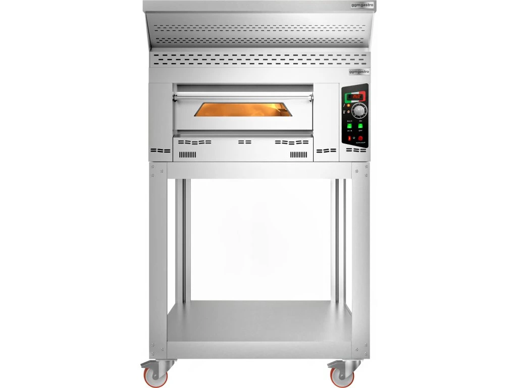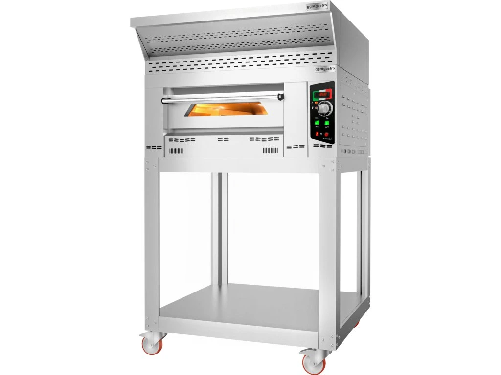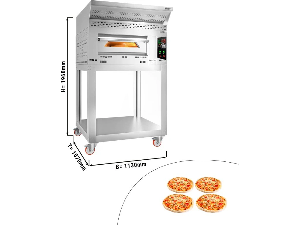 Gazowy piec do pizzy - 4x 34 cm - Manualny - włącznie z okapem, podstawą & zestawem kółek