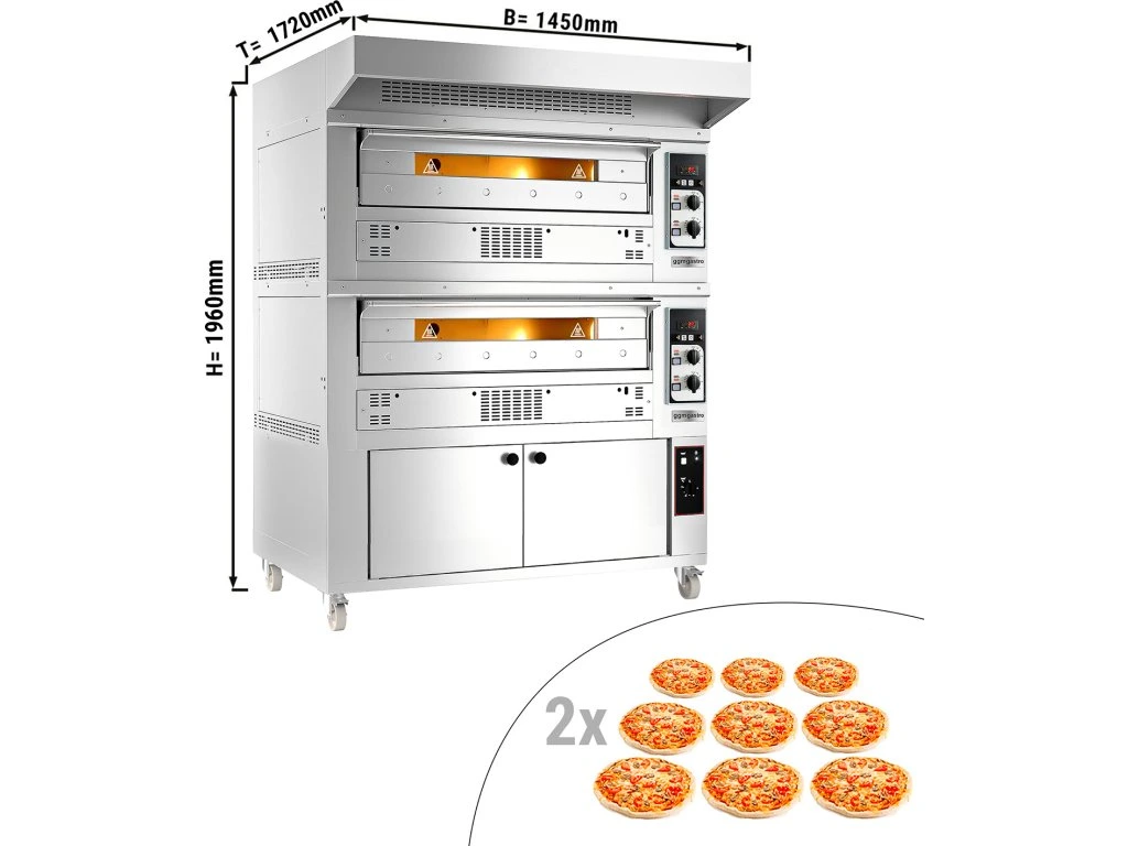 Gazowy piec do pizzy - 9+9x 33cm - Manualny - włącznie z okapem & garownikiem