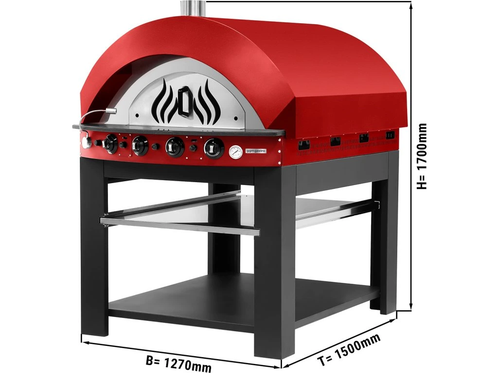 Gazowy piec do pizzy - czerwony - 9 x 25 cm - manualny - włącznie z podstawą