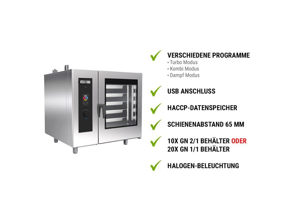 Gazowy piec konwekcyjno-parowy - Touch- 10x GN 2/1 lub 20x GN 1/1 - włącznie ze zintegrowanym bojlerem i wspornikami