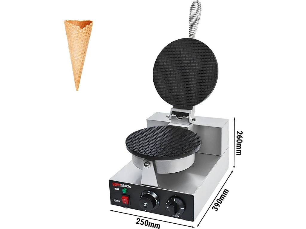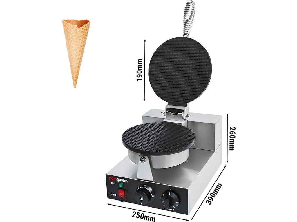 Gofrownica - Pojedyncza - 1.3kW - do rożków lodowych - Ø 190mm