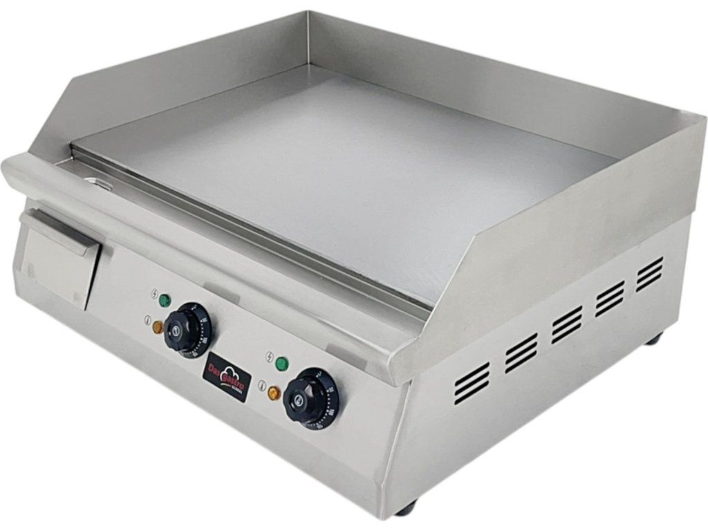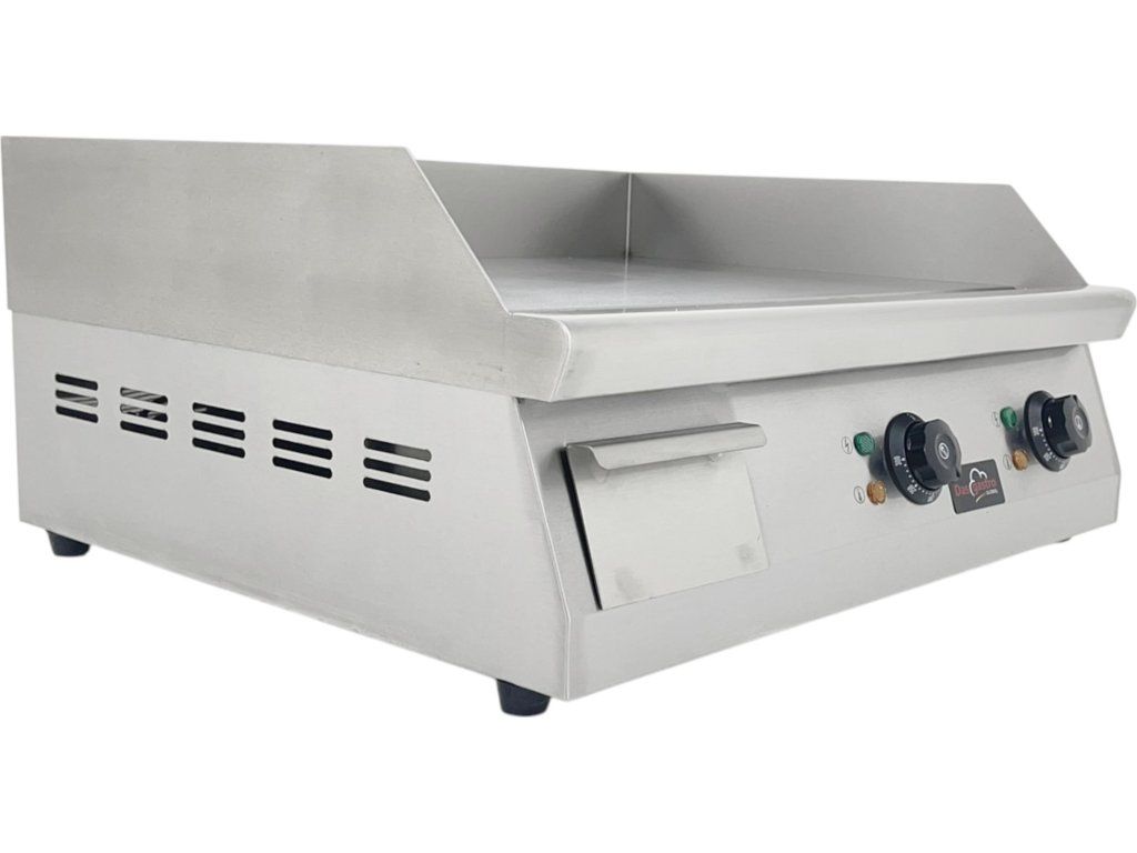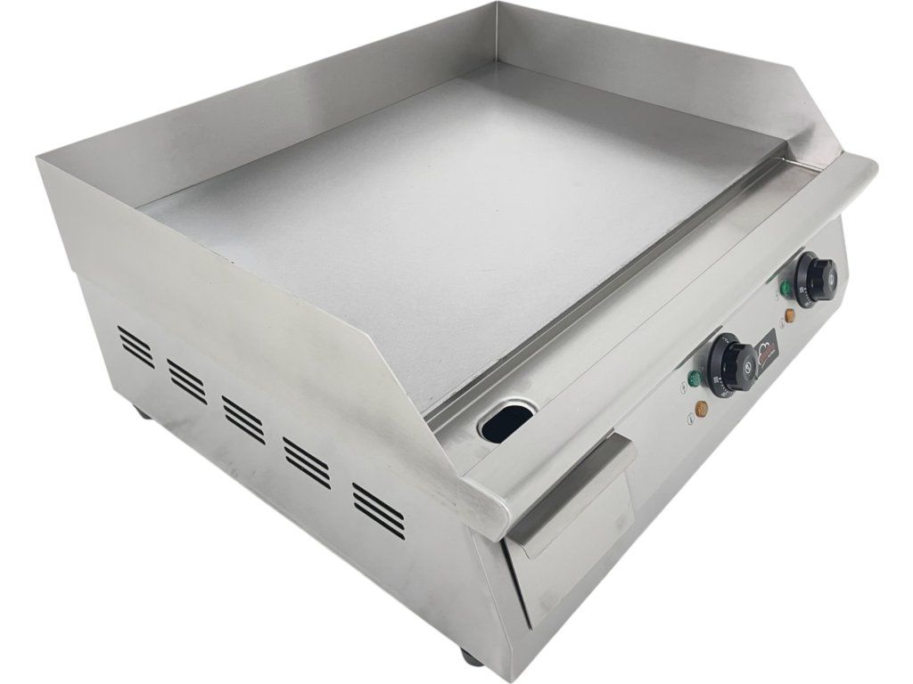 Szukasz niezawodnego i mocnego grilla do profesjonalnej kuchni? Grill elektryczny z gładką płytą grillową o szerokości 61 cm to idealny wybór do lokali gastronomicznych, gdzie priorytetem jest szybkość, precyzja i higiena. Dzięki płynnej regulacji temperatury w zakresie od 50 do 300°C zapewnia on maksymalną kontrolę nad przygotowywaniem potraw – od delikatnego zrumienienia po intensywne grillowanie.