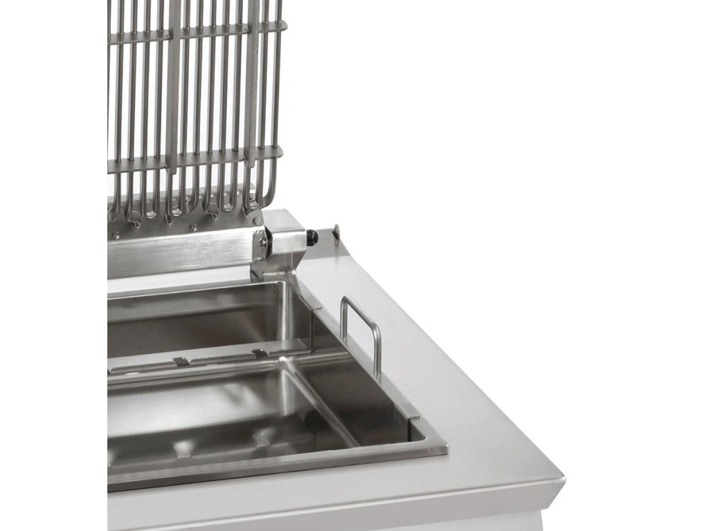 - Po wyczyszczeniu rurowy element grzejny jest obracany, aby wyjąć tackę ociekową i urządzenie jest natychmiast gotowe do ponownego użycia.