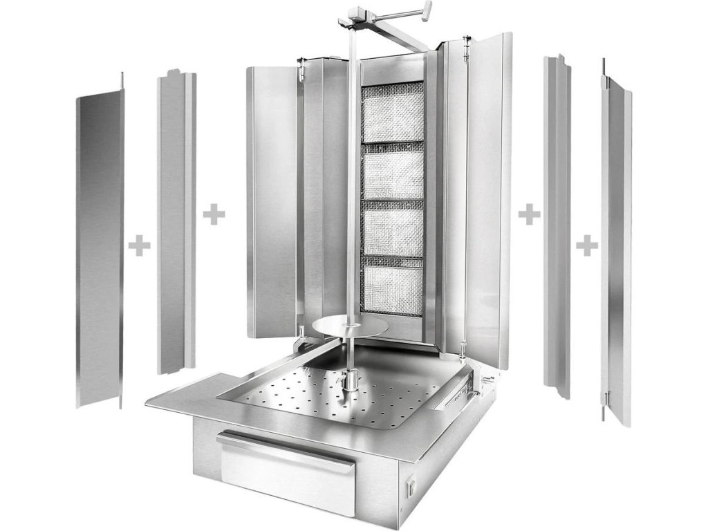 Grill gazowy do gyrosa /kebaba - 4 palniki - maks. 60 kg - włącznie z płytą ochronną i drzwiami na zawiasach - dla FRA & BEL