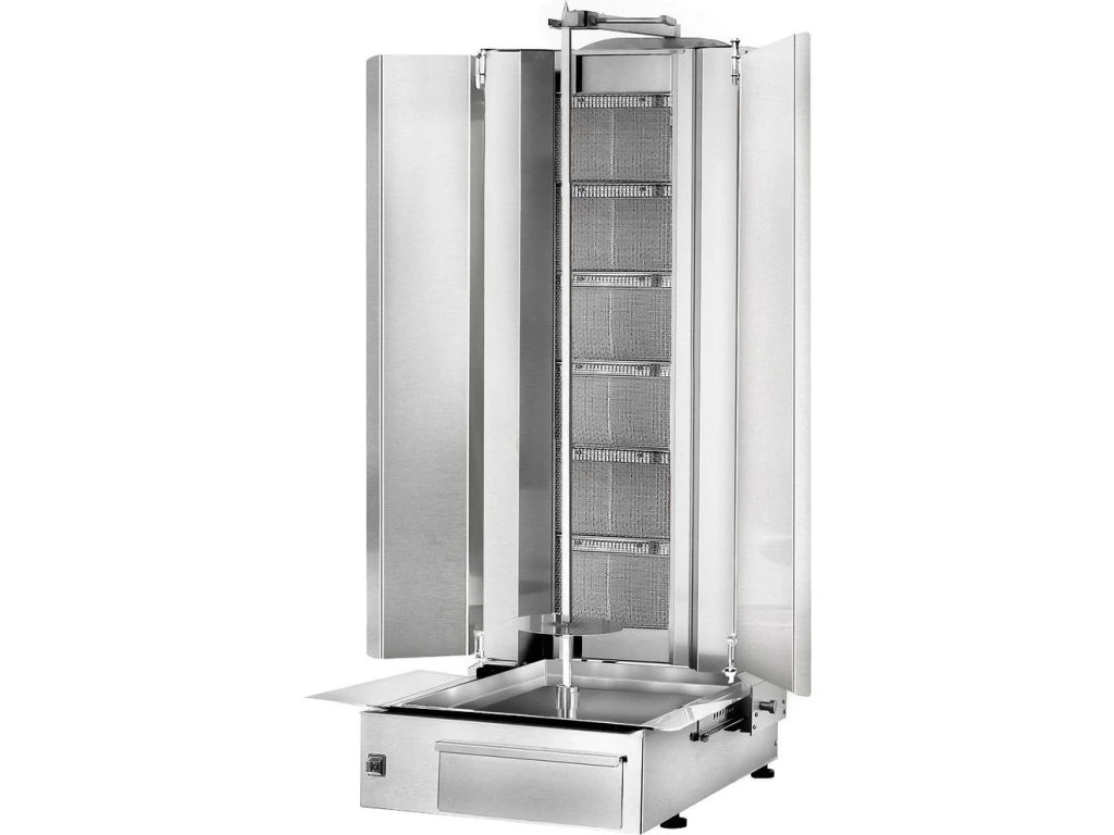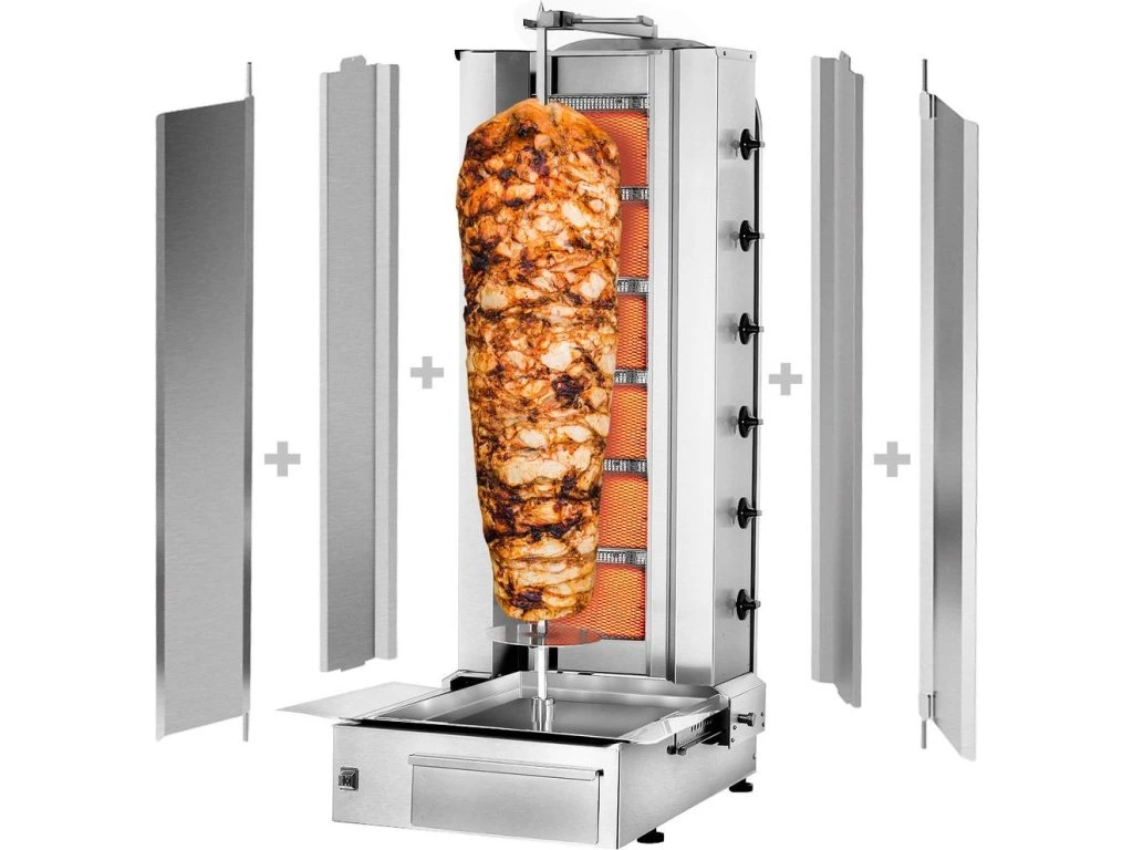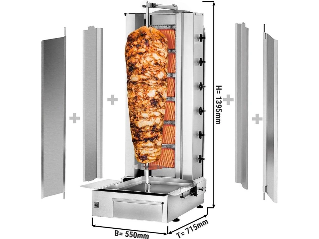 Grill gazowy do gyrosa /kebaba - 6 palników - maks. 100 kg - włącznie z płytą ochronną & drzwiami na zawiasach