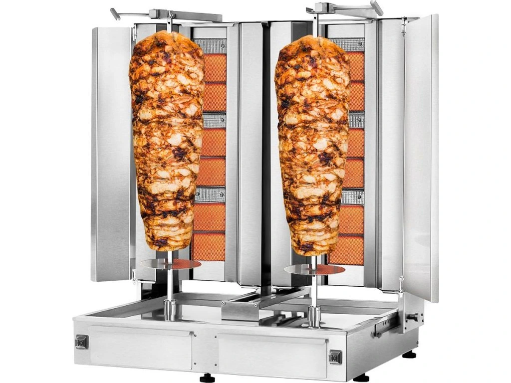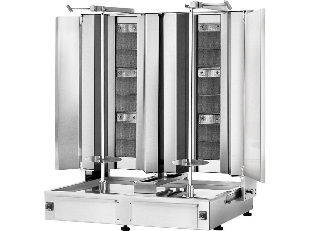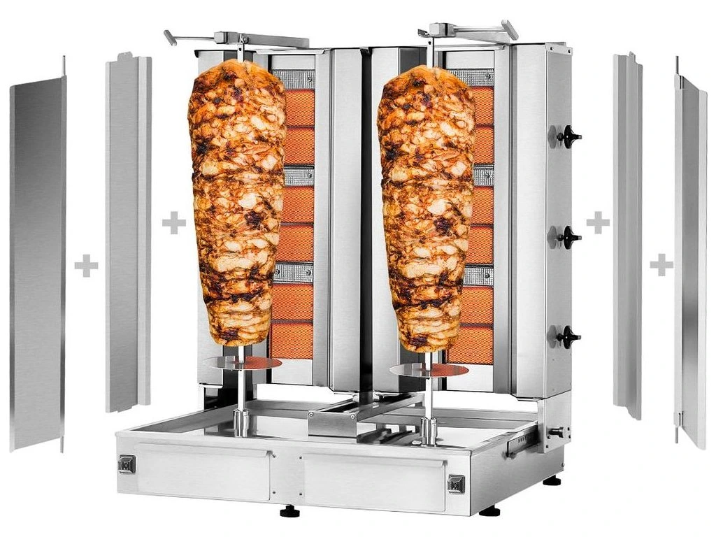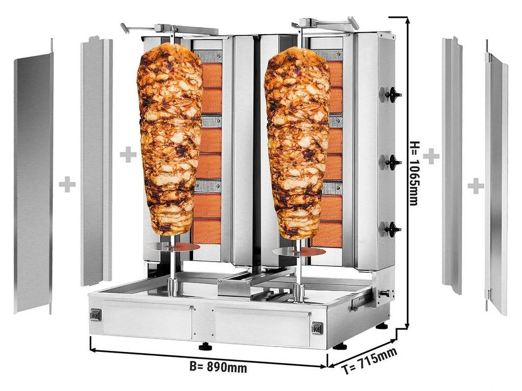 Grill gazowy do gyrosa /kebaba - 3+3 palniki - maks. 80 kg - włącznie z płytą ochronną i drzwiami na zawiasach