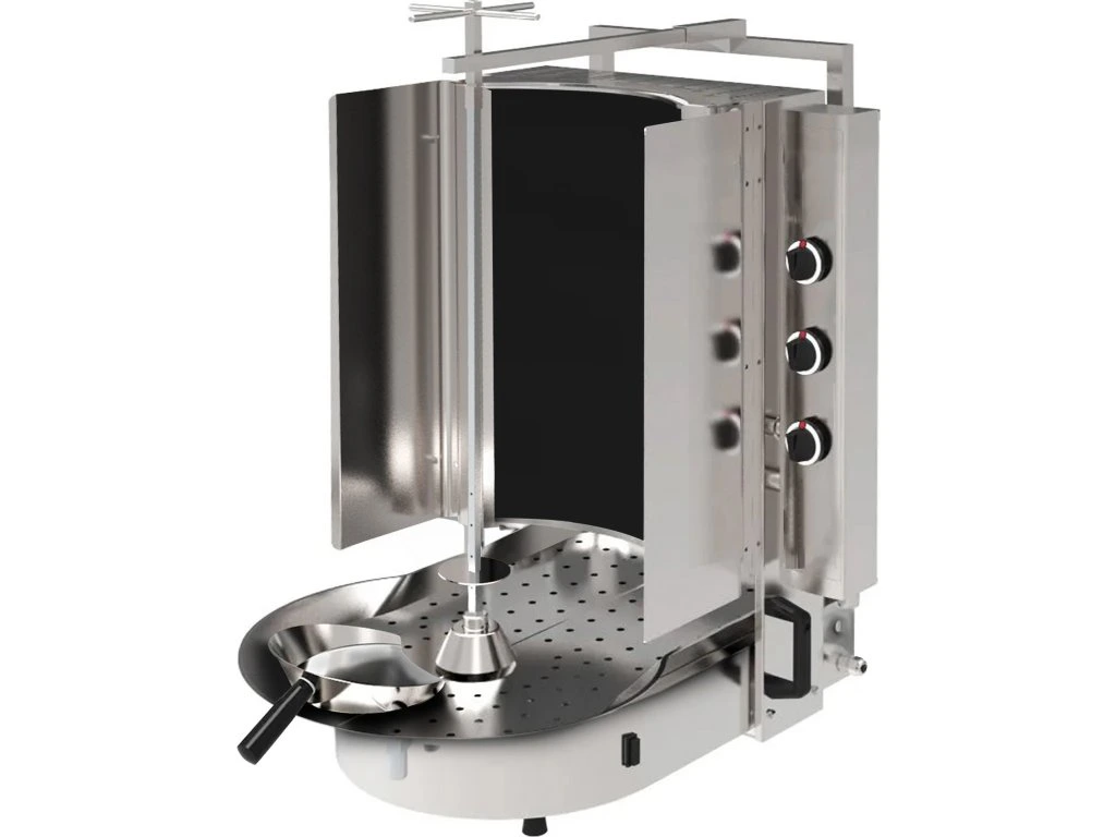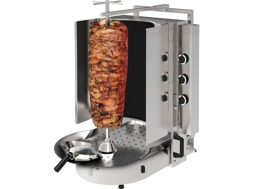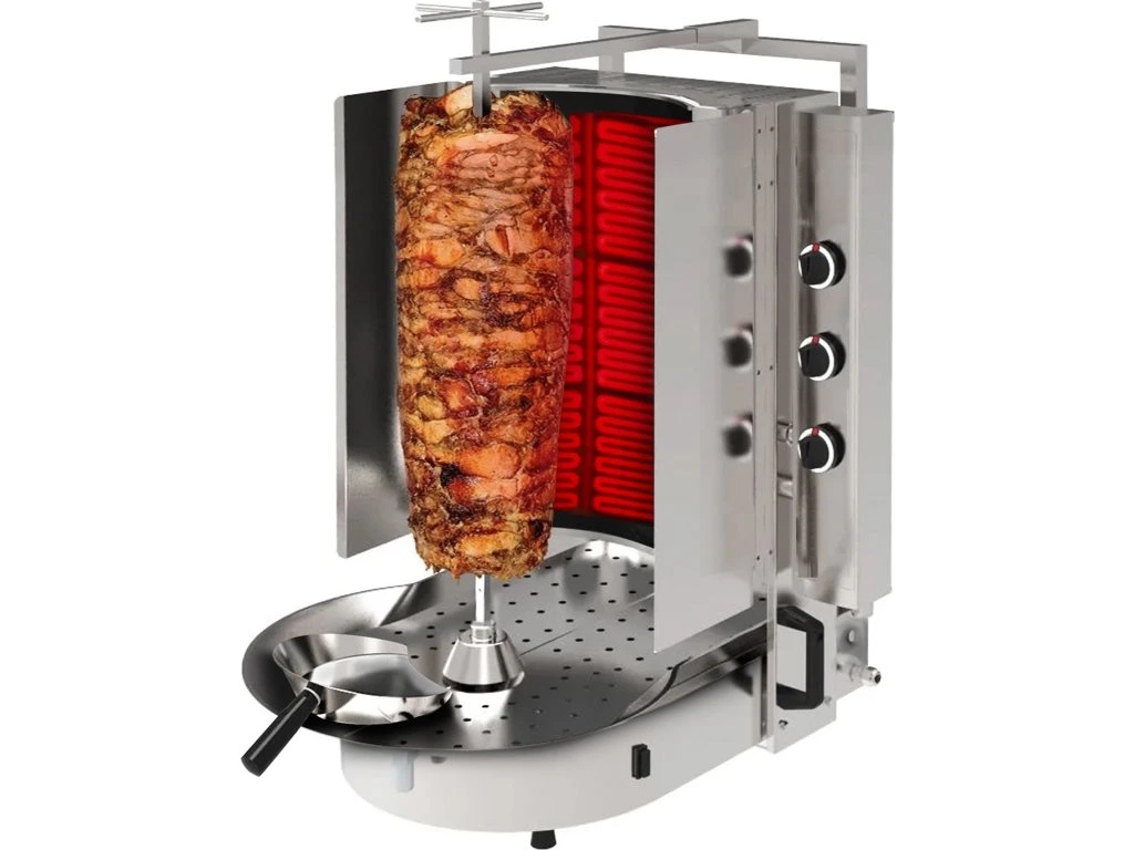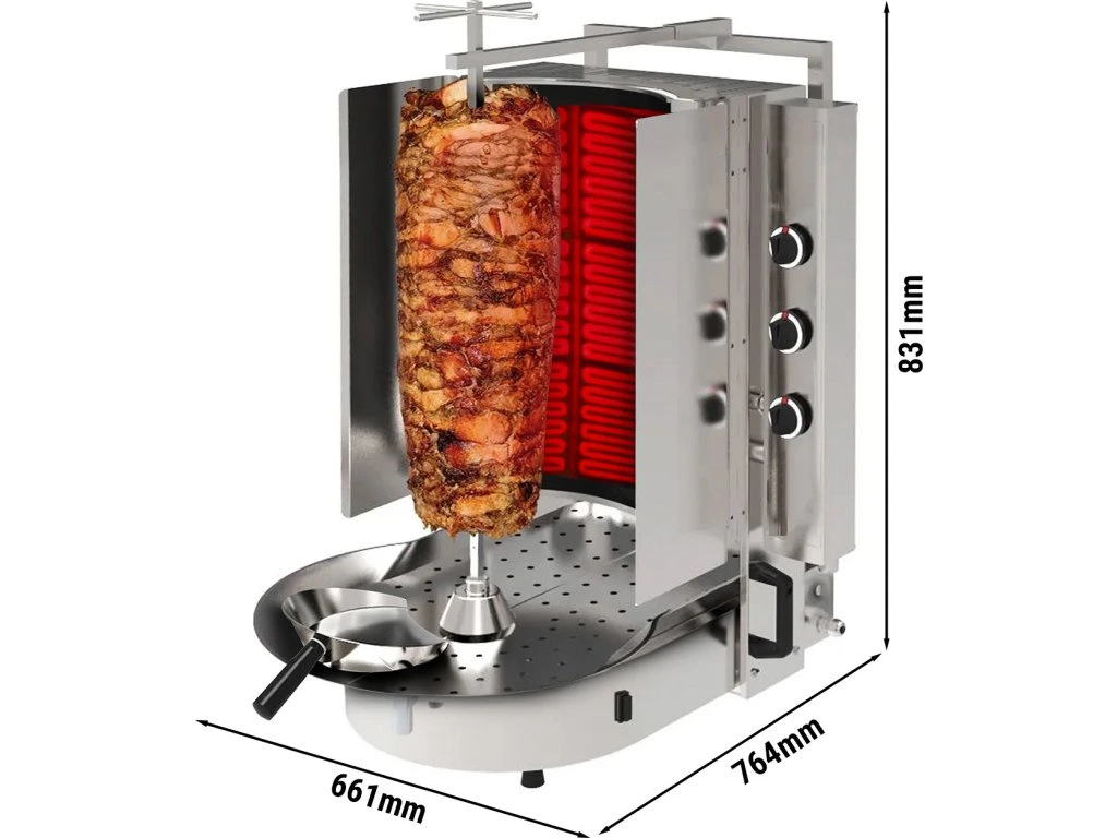 - Gazowy grill do gyrosa/kebaba z 6 palnikami i szkłem Robax
