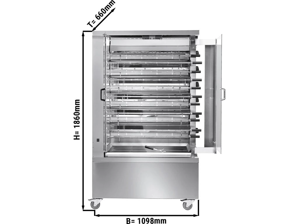 Grill gazowy ECO do kurczaka - 37,2 kW - z 11 szpikulcami na 66 kurczaków