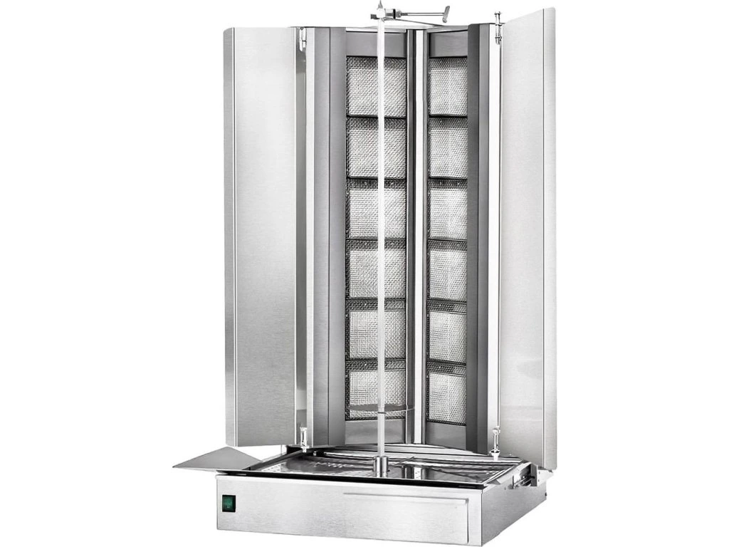 Grill gazowy gyro/döner - kształt V - 6+6 palników - maks. 150 kg - z drzwiami na zawiasach