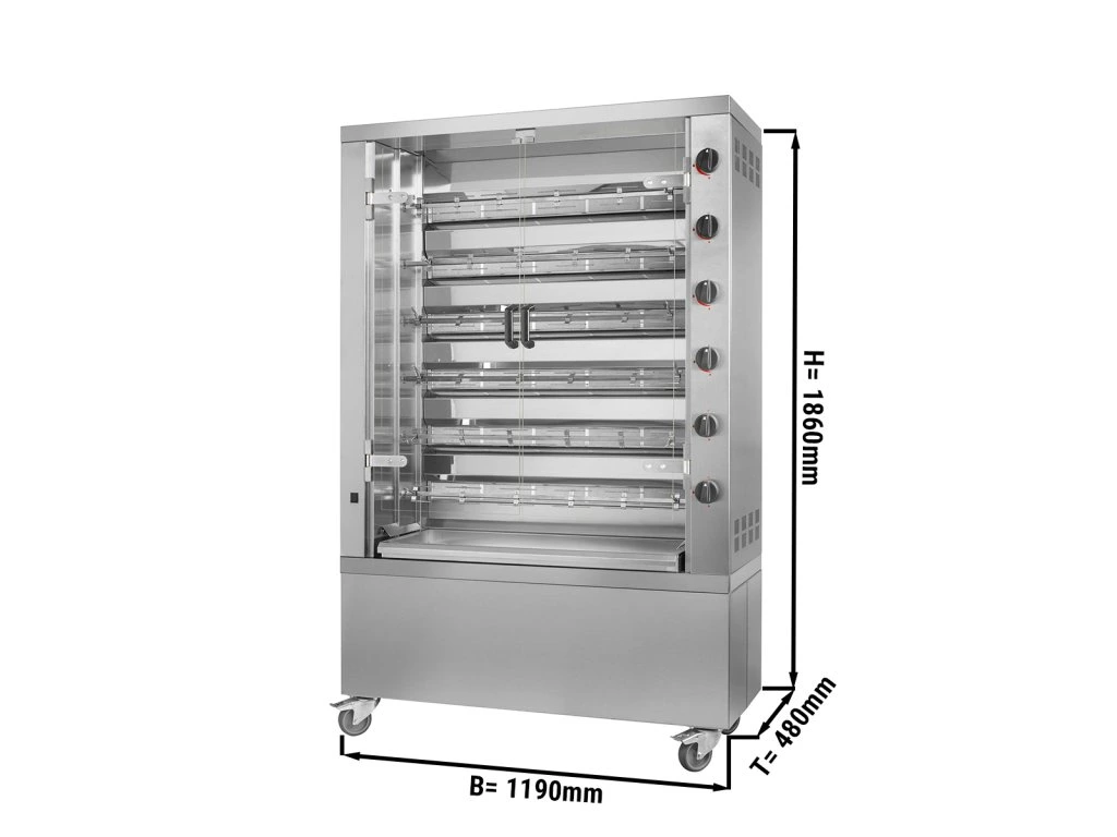 Grill gazowy PREMIUM do kurczaka - 35,3 kW - z 6 szpikulcami na 36 kurczaków