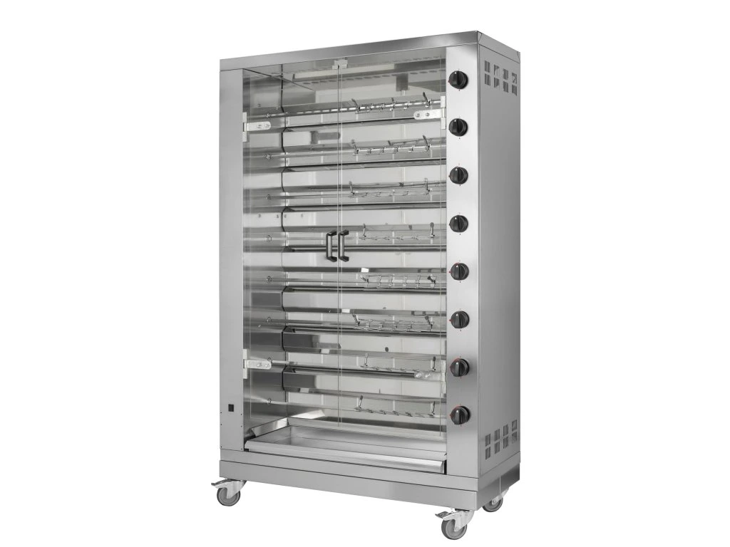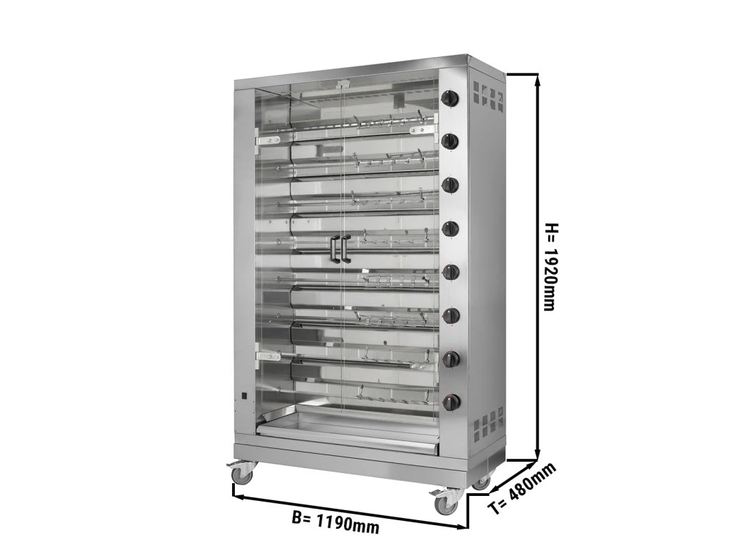 Grill gazowy PREMIUM do kurczaka - 47,6 kW - z 8 szpikulcami na 48 kurczaków