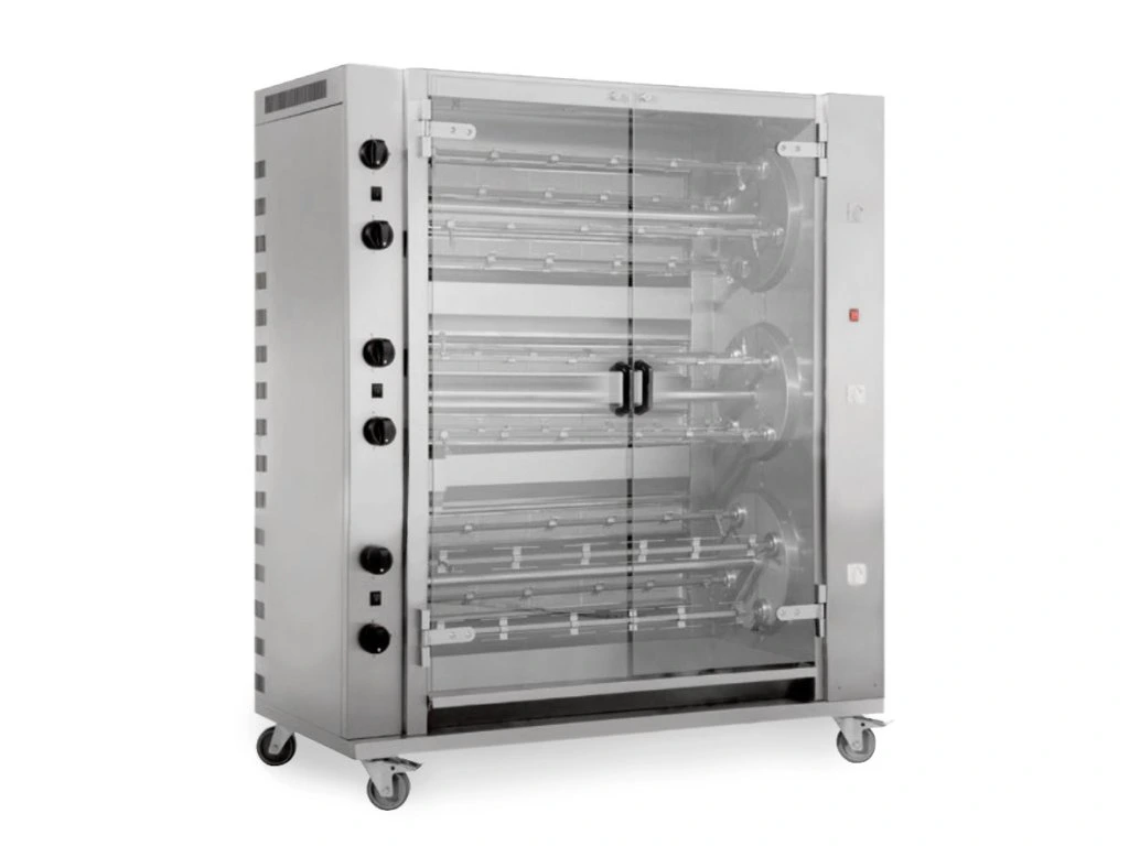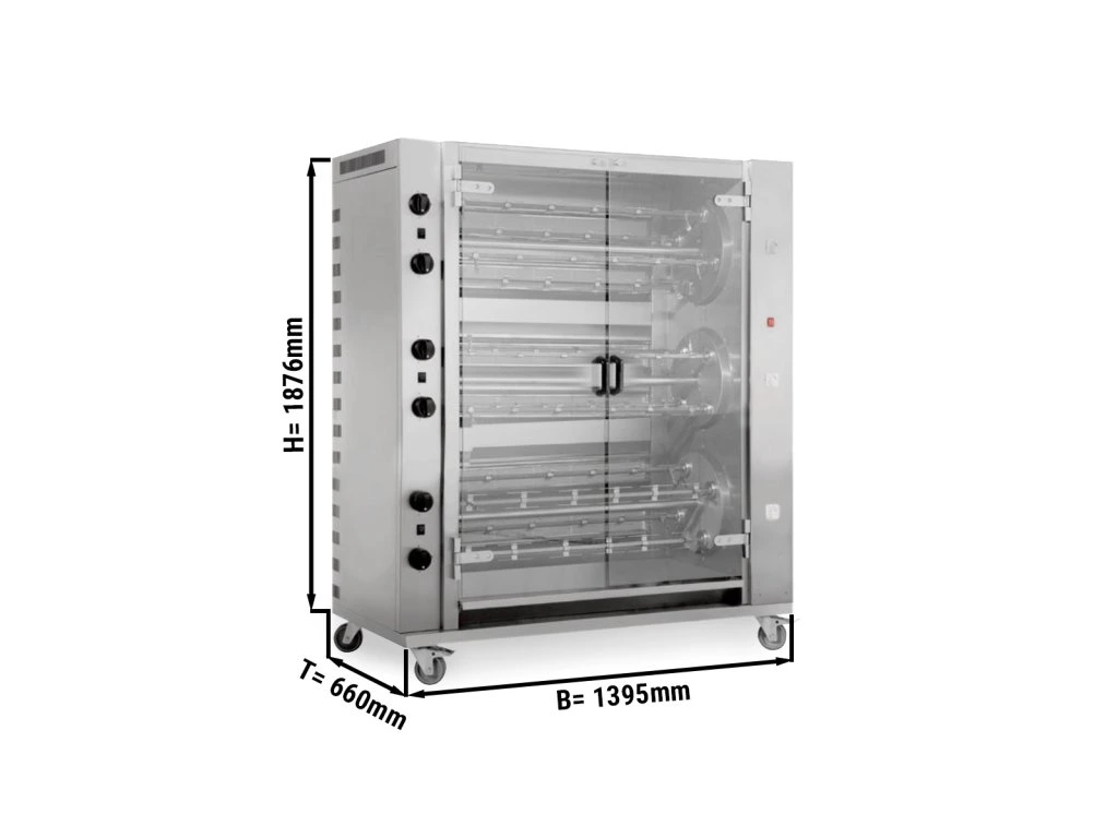 Grill gazowy PREMIUM do kurczaka z rożna - 55,8 kW - z 12 szpikulcami na 72 kurczaki
