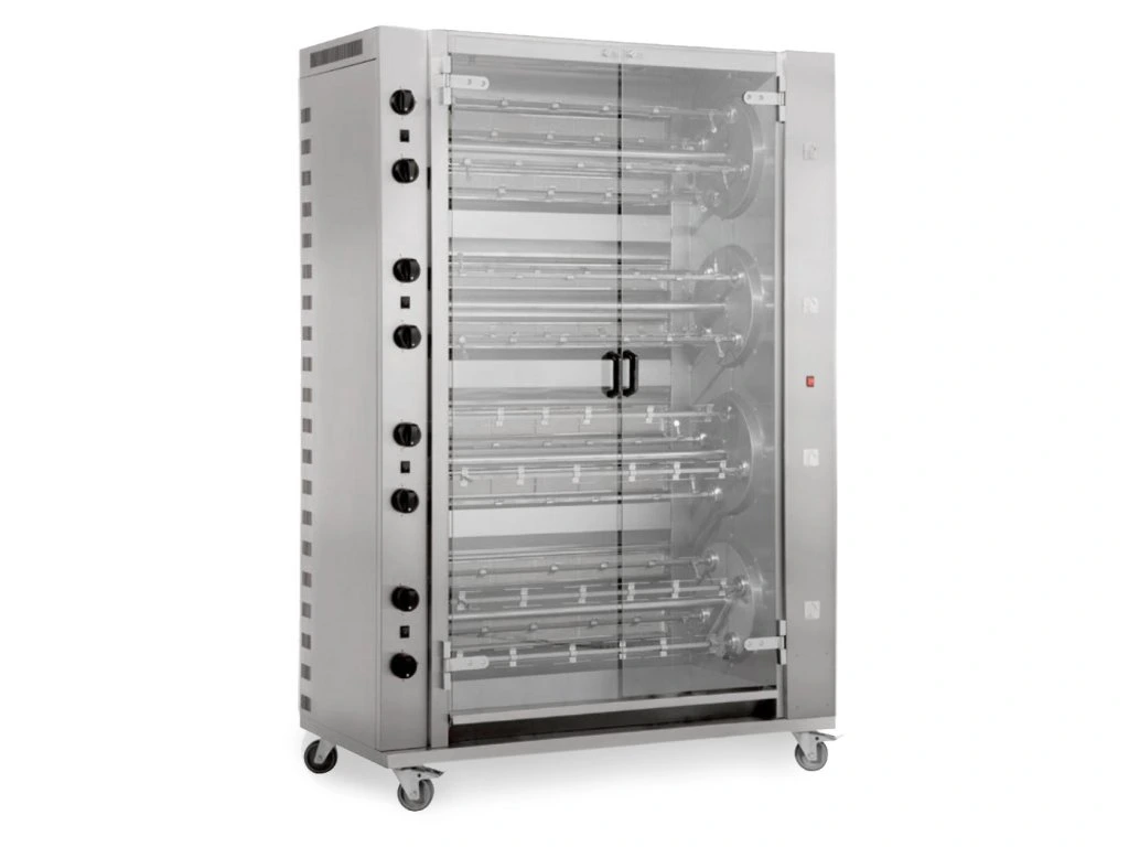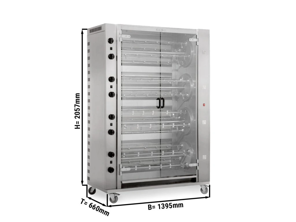 Grill gazowy PREMIUM do kurczaka z rożna - 74,4 kW - z 16 szpikulcami na 96 kurczaków