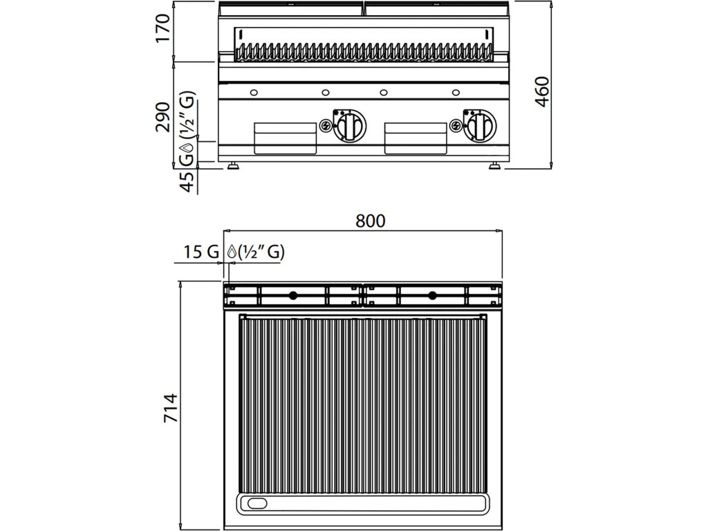 - Wymiary zewnętrzne szer. x gł. x wys: 800 mm x 714 mm x 460 mm