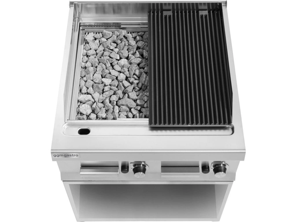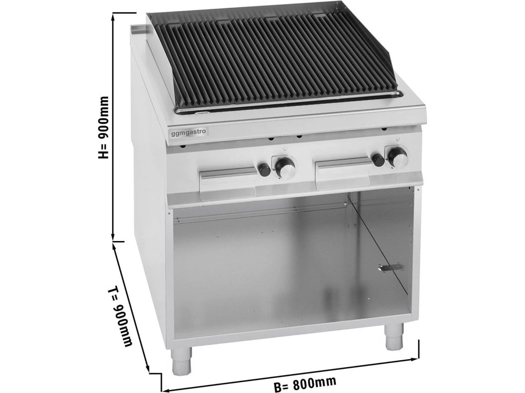 Komercyjny grill gazowy Lava PREMIUM – wolnostojący – głębokość 900 mm – 6,9 kW – gaz ziemny/LPG – wyjmowany ruszt żeliwny, dwie strefy sterowania