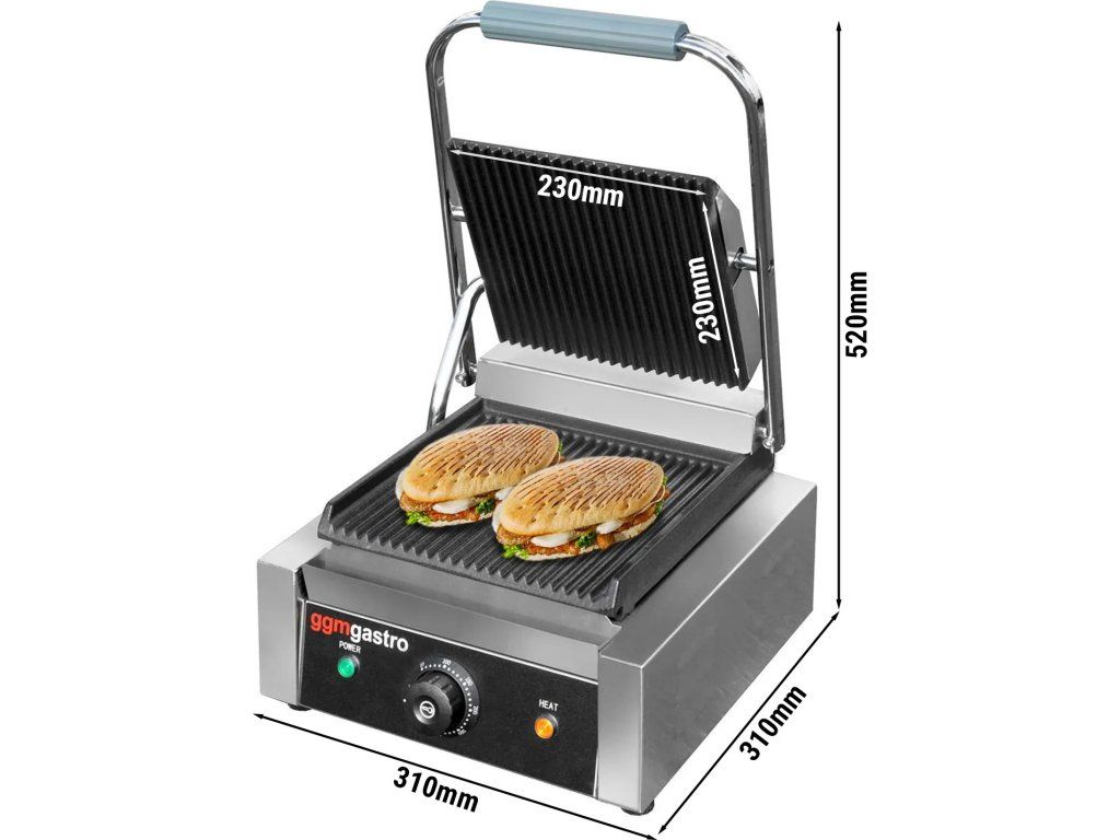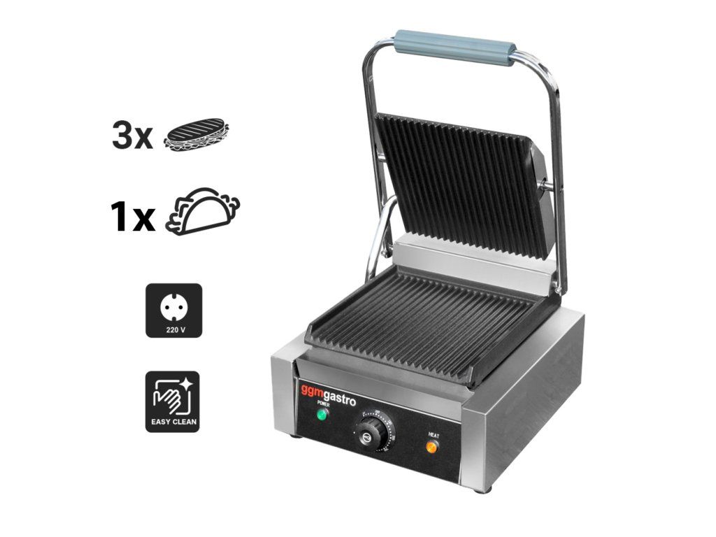 Grill kontaktowy - 2,2 kW - Ryflowana góra & dół - Powierzchnia grillowania: 230x230 mm