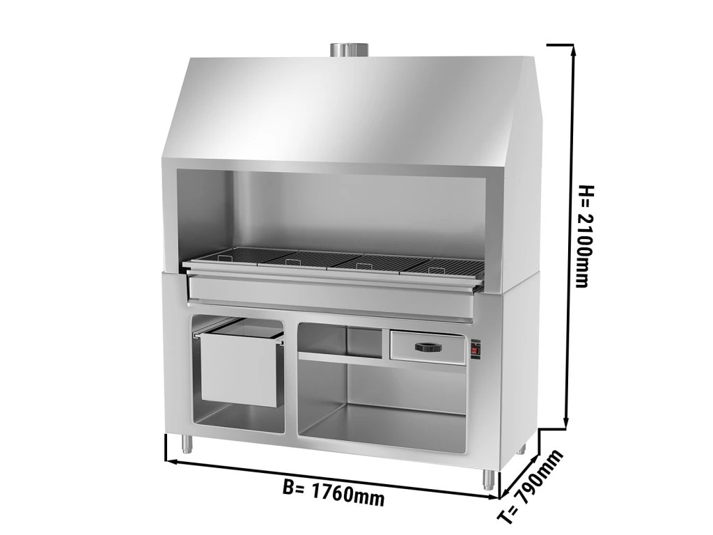 Grill na węgiel drzewny - 1,76m - wygląd stal nierdzewna