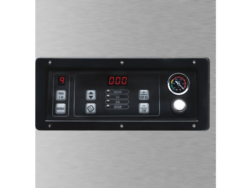- Dostosowane programowanie pozwala wybrać idealne ustawienie miękkiego powietrza i dostosować próżnię, uszczelnienie, chłodzenie i czas wlotu gazu do różnych zastosowań spożywczych i kulinarnych.