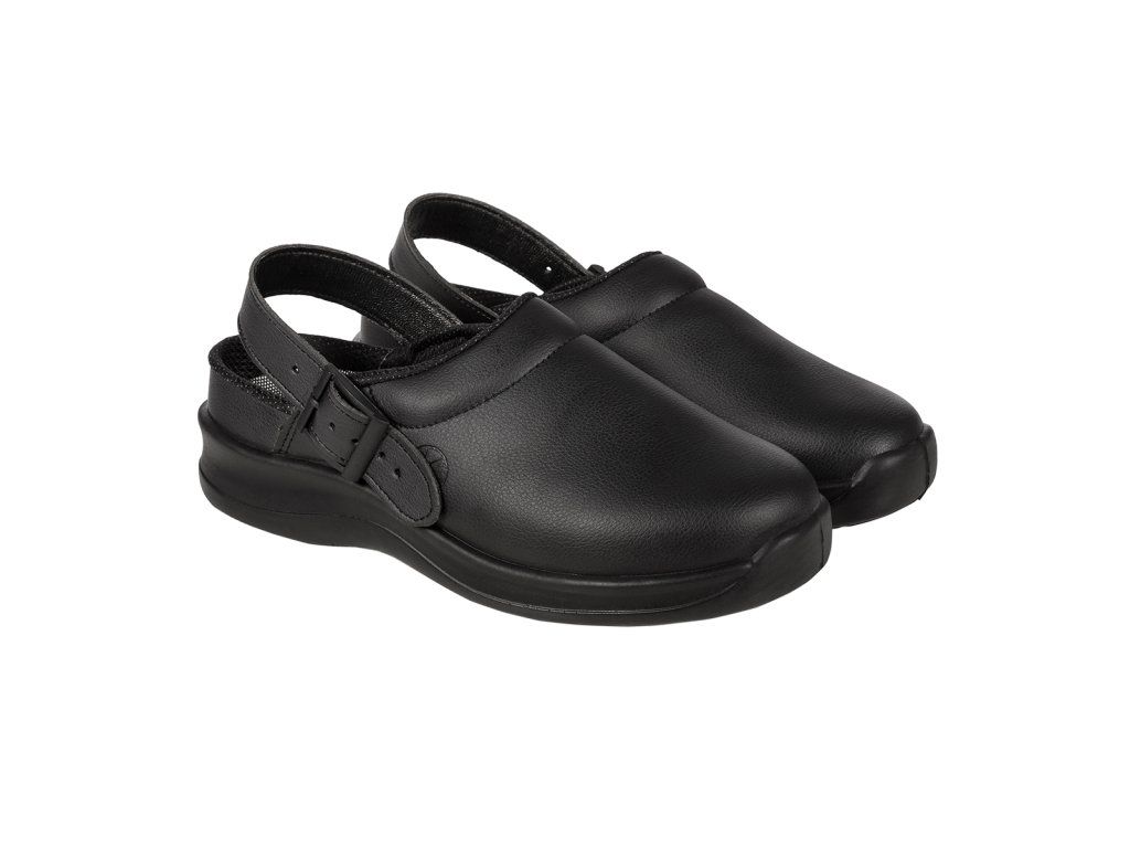 - otwarty z tyłu, pasek na pięcie z klamrą
