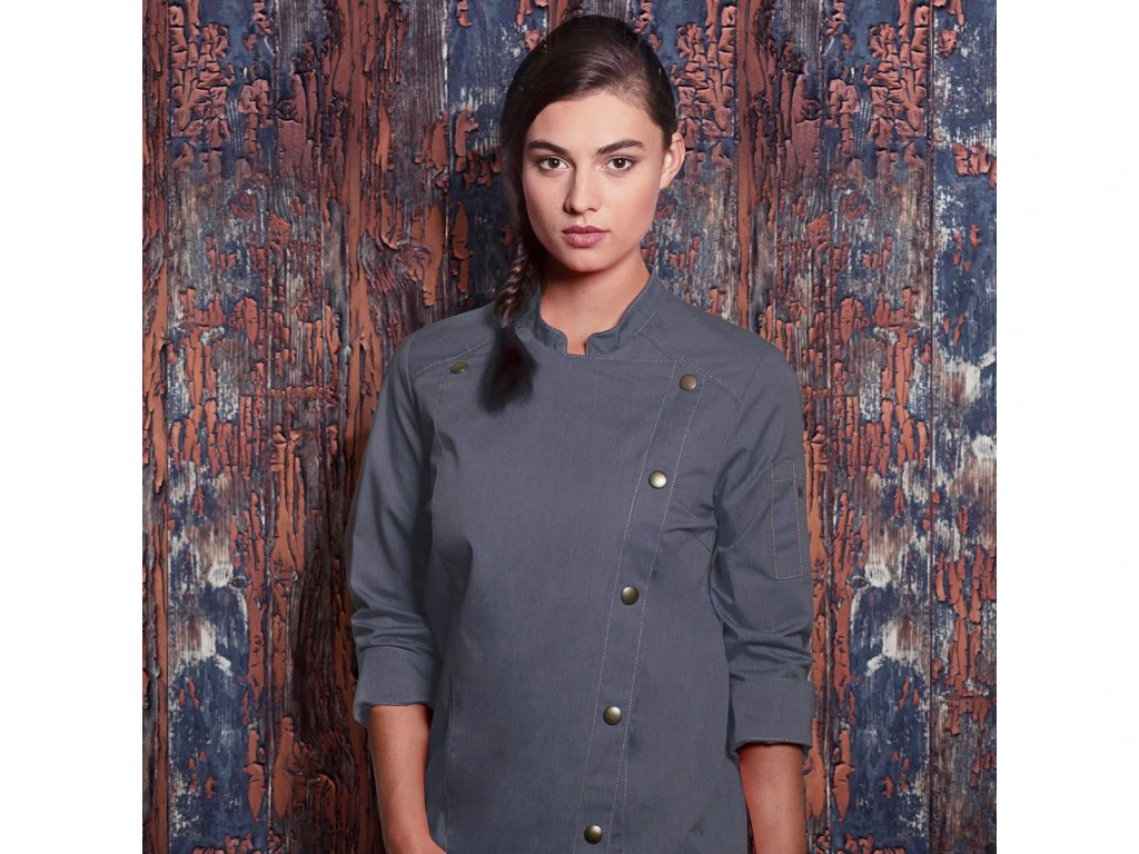 - Modna damska kurtka szefa kuchni w dżinsach o smukłej sylwetce
