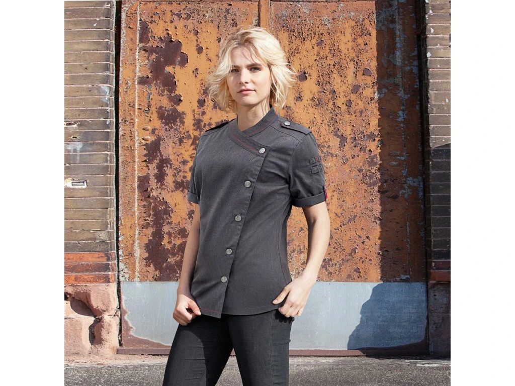 - Damska kurtka szefa kuchni z krótkim rękawem w stylu dżinsowym ROCK CHEF®